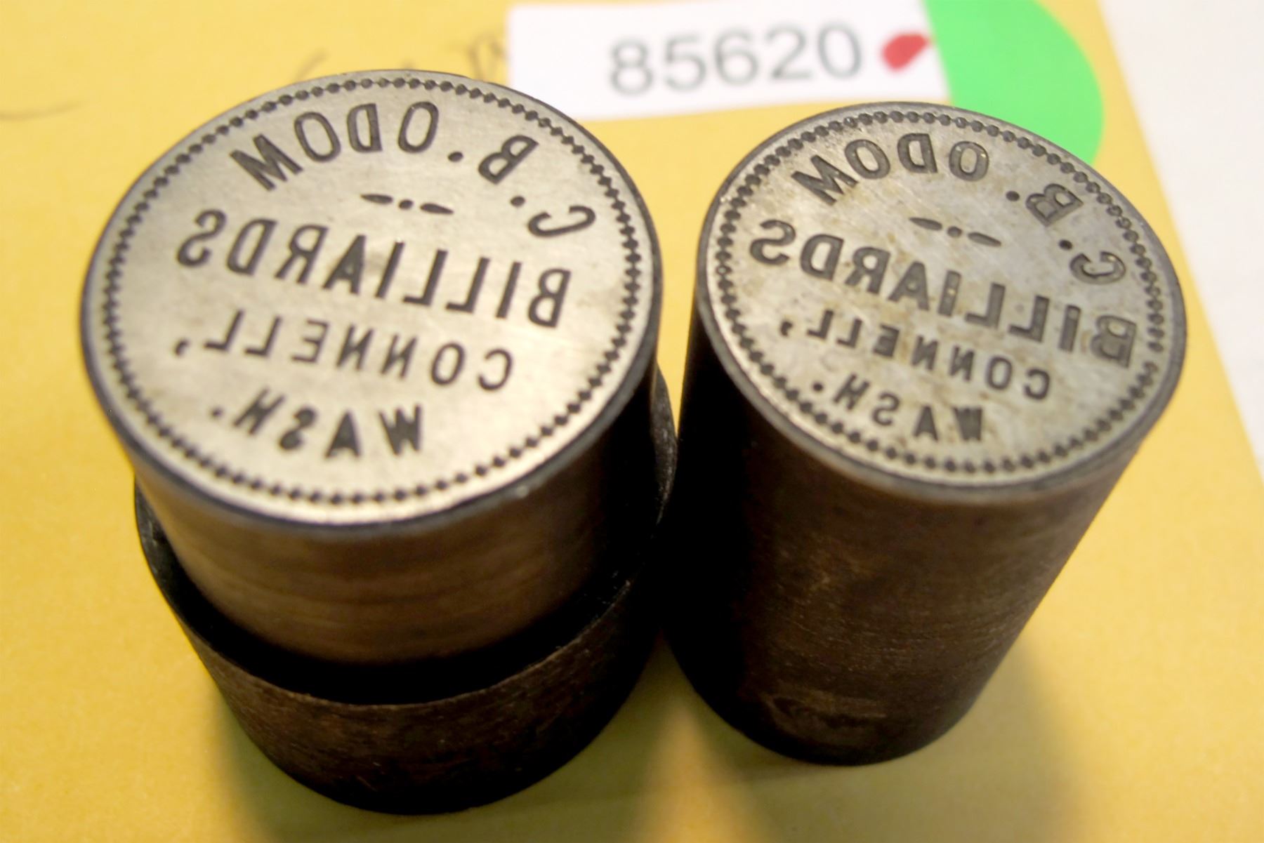 2 toke dies identified from Connell, WA. 24mm and 26mm CB Odom. Northwest Territorial Mint Token Die Collection.