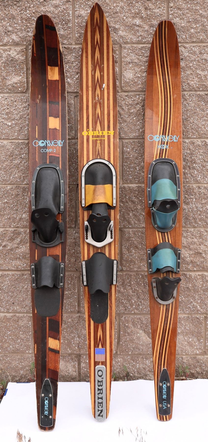 Lot of 3. Beautifully wooden water ski’s by Connelly. All Are about 70” in overall good condition, but they do show use. Boots are in good condition.