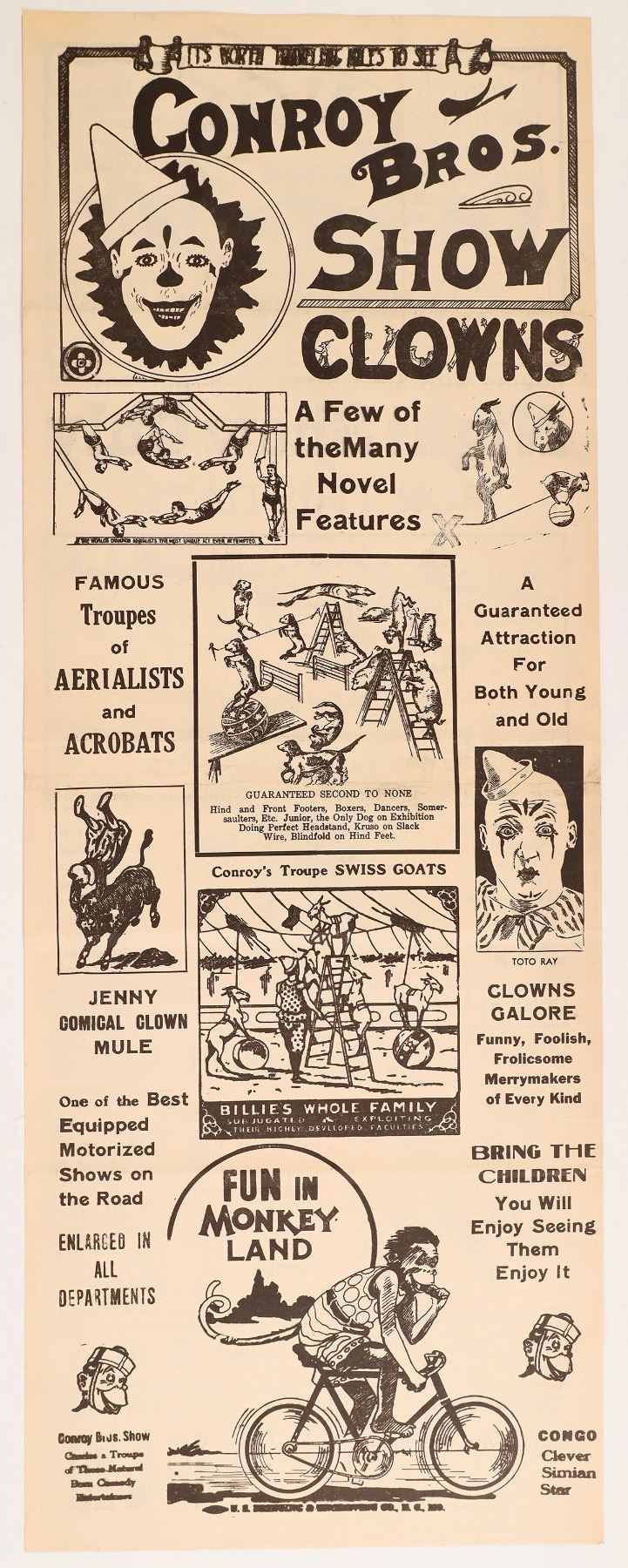 Conroy Bros. Circus broadside-Fun in Monkey Land and more. 34x10.5".