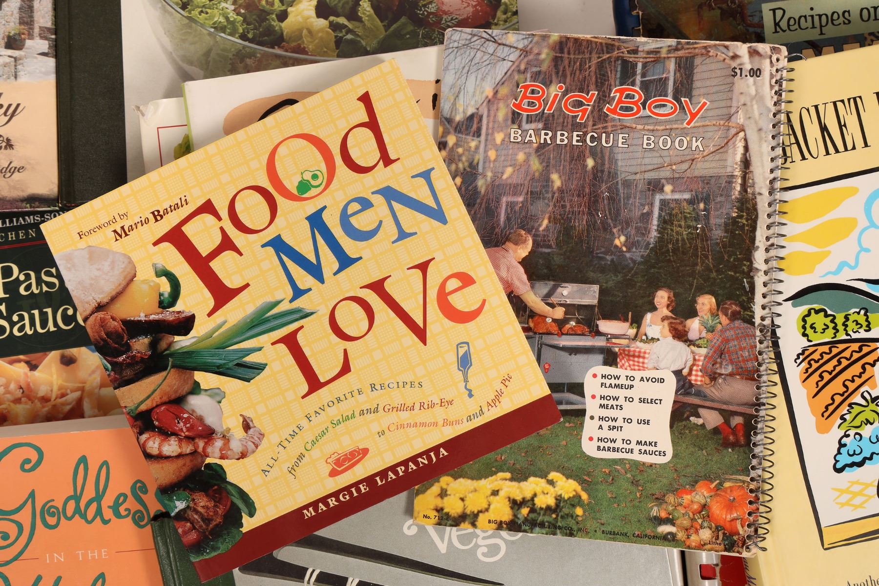 About 50 c. 1950's-1980's cookbooks including some from Nevada. Wide variety, see photo for what's cooking! 33 lbs.