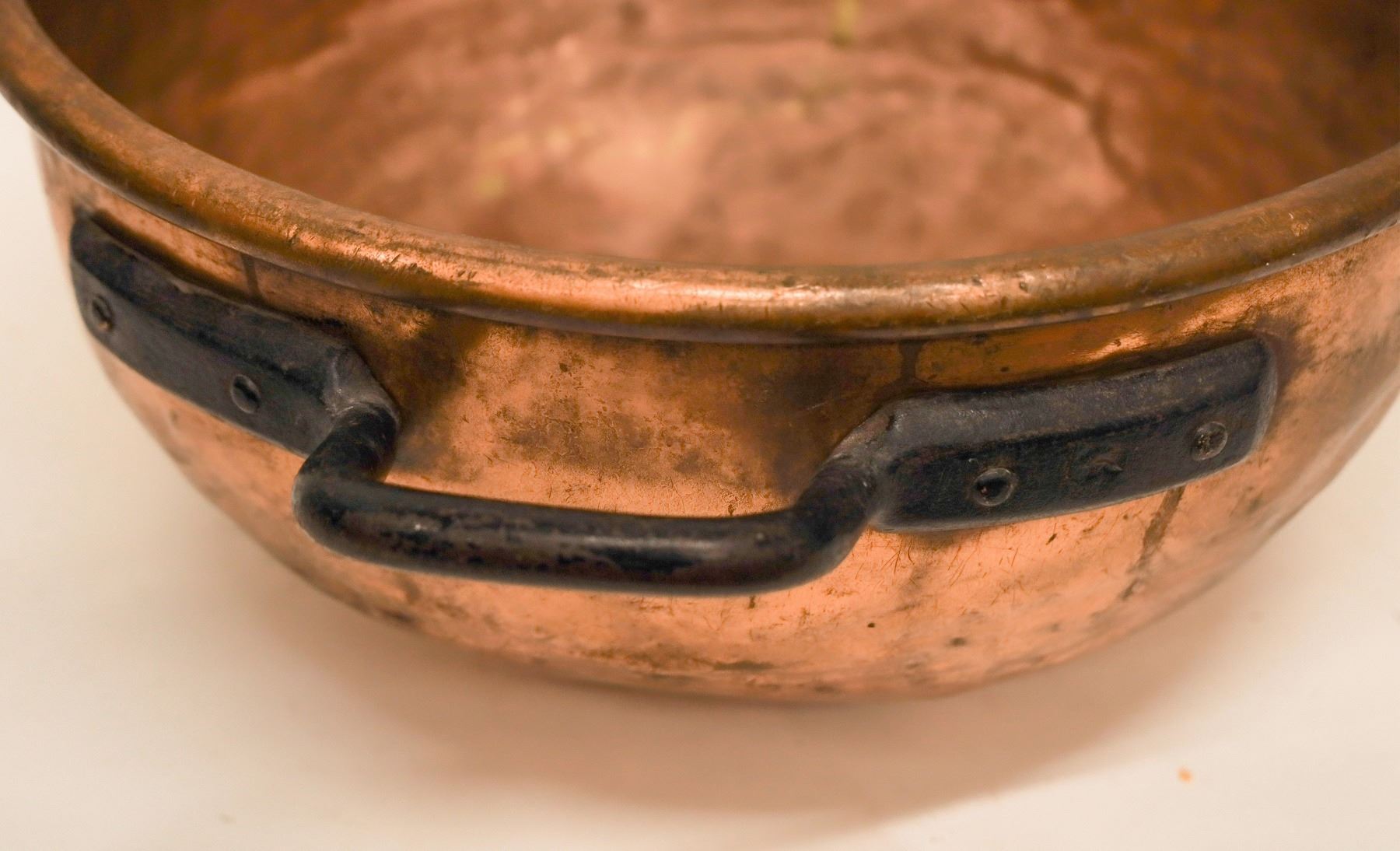 A 19"x 9" copper candy pot, It appears to have a hammered surface and is in very solid and nice condition. You can use it as a kitchen tool or as a display item. Please see photos for more details.