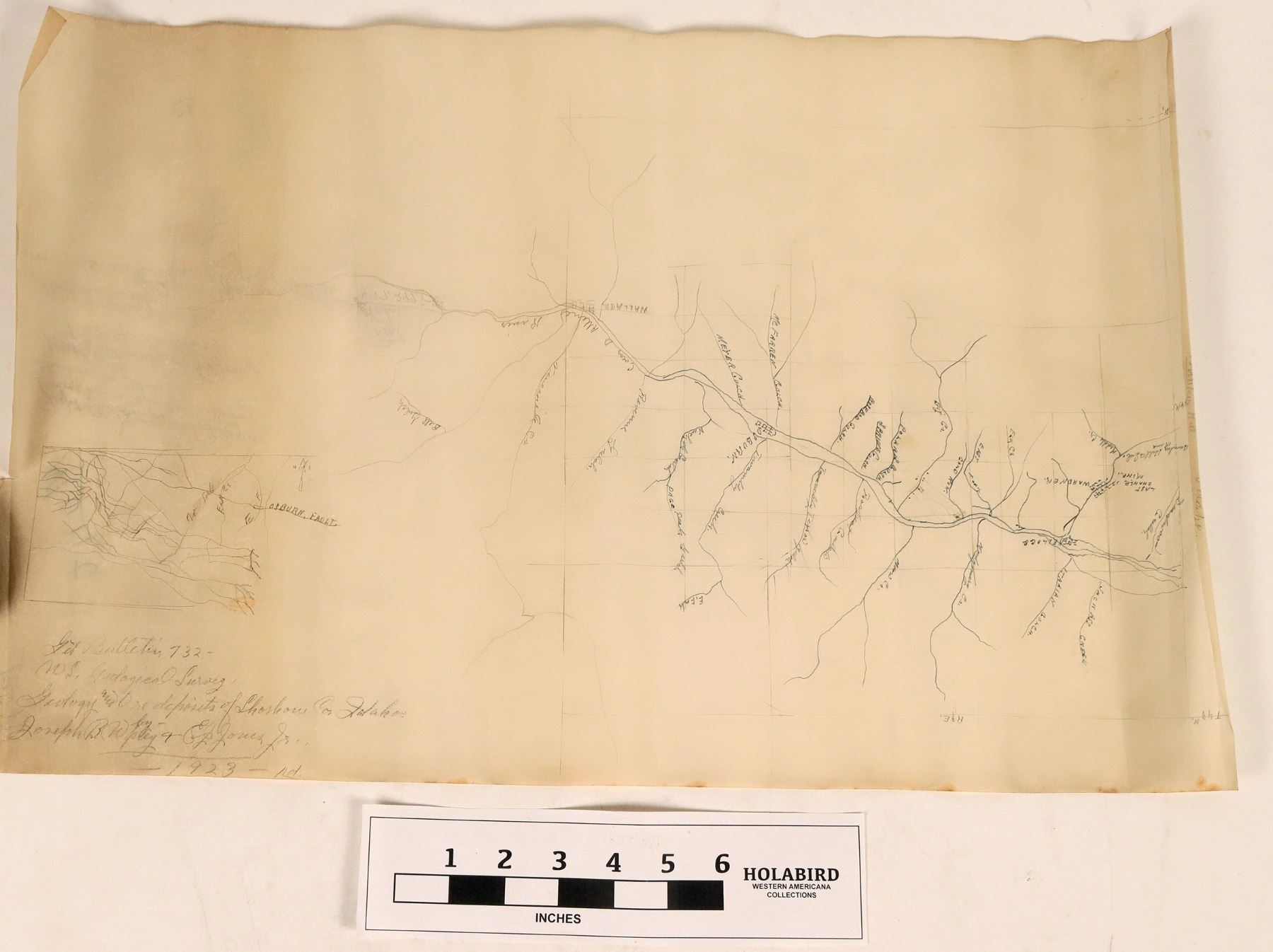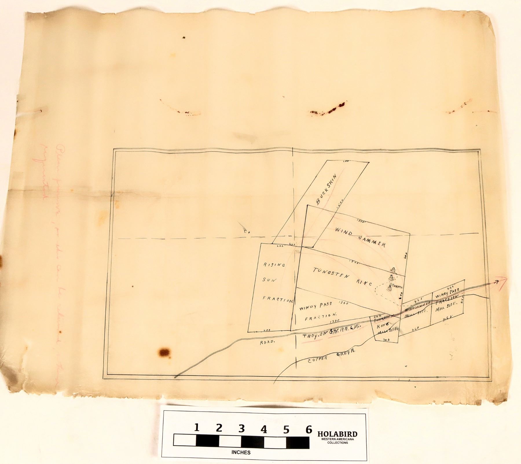 These are two mining maps of Copper Creek and Troy, Idaho; both are hand drawn on velum written by Joseph B. Wiply and E. J. Jones.