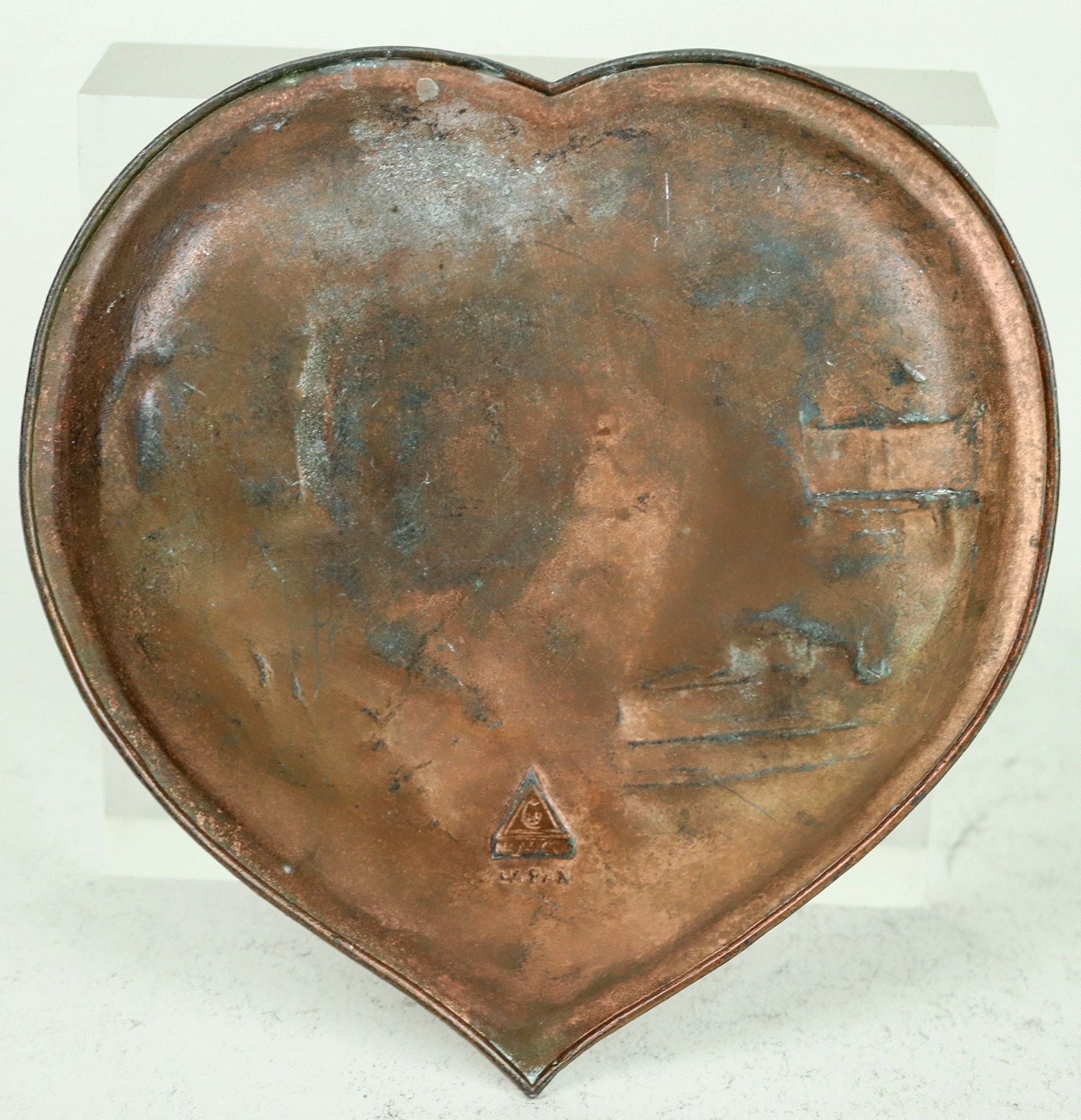 Small heart shaped copper tray. Die cut inside tray "Copper Mine Bingham Canyon. Scenes od steam shovel, miners, dredge?, the mine. .Excellent cond.
