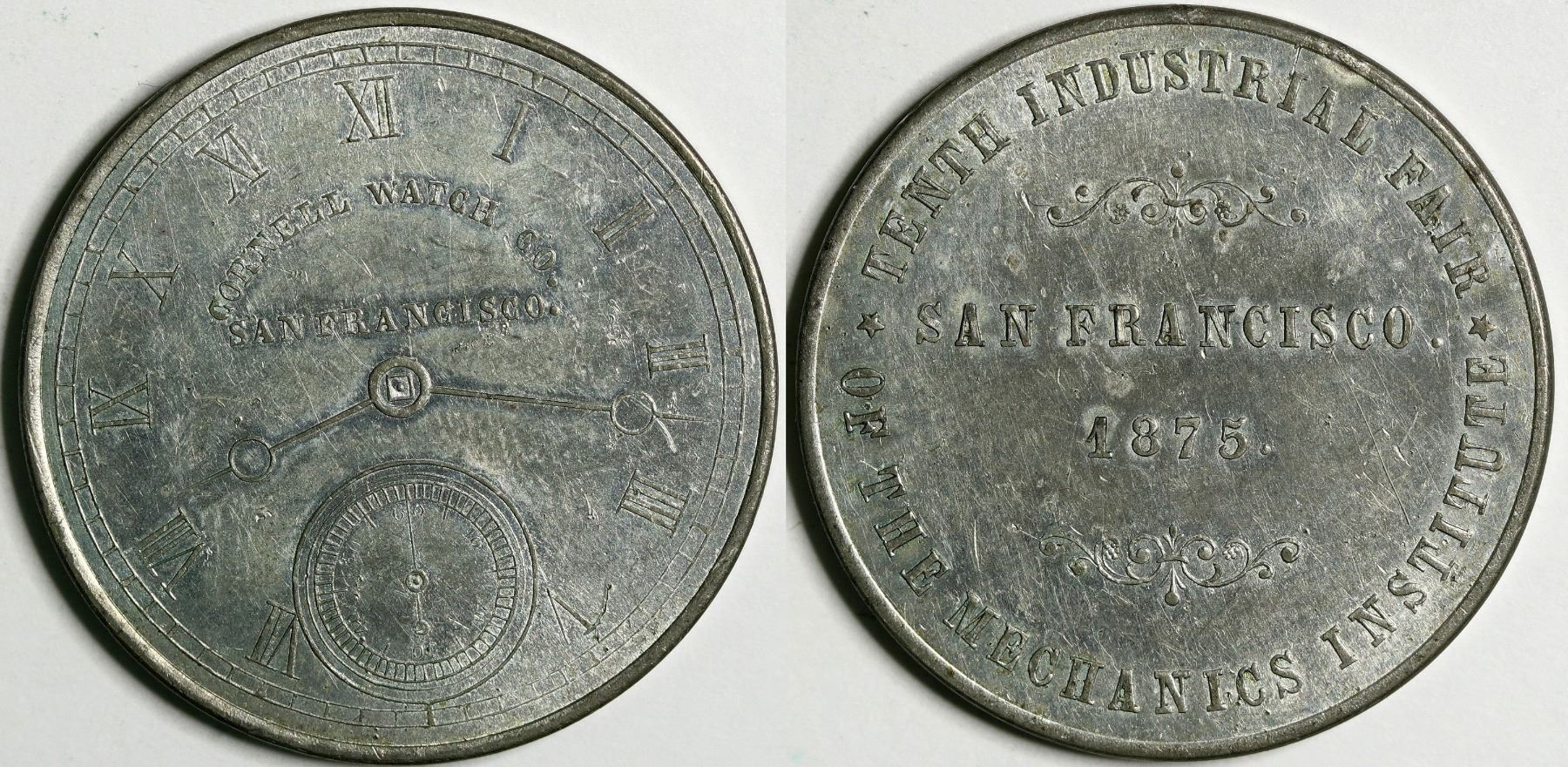 1875 Cornell Watch Co. Tenth Industrial Fair of the Mechanics Institute. 30.69mm. Silvered WM. Rulau Ca-SF 28. Unc