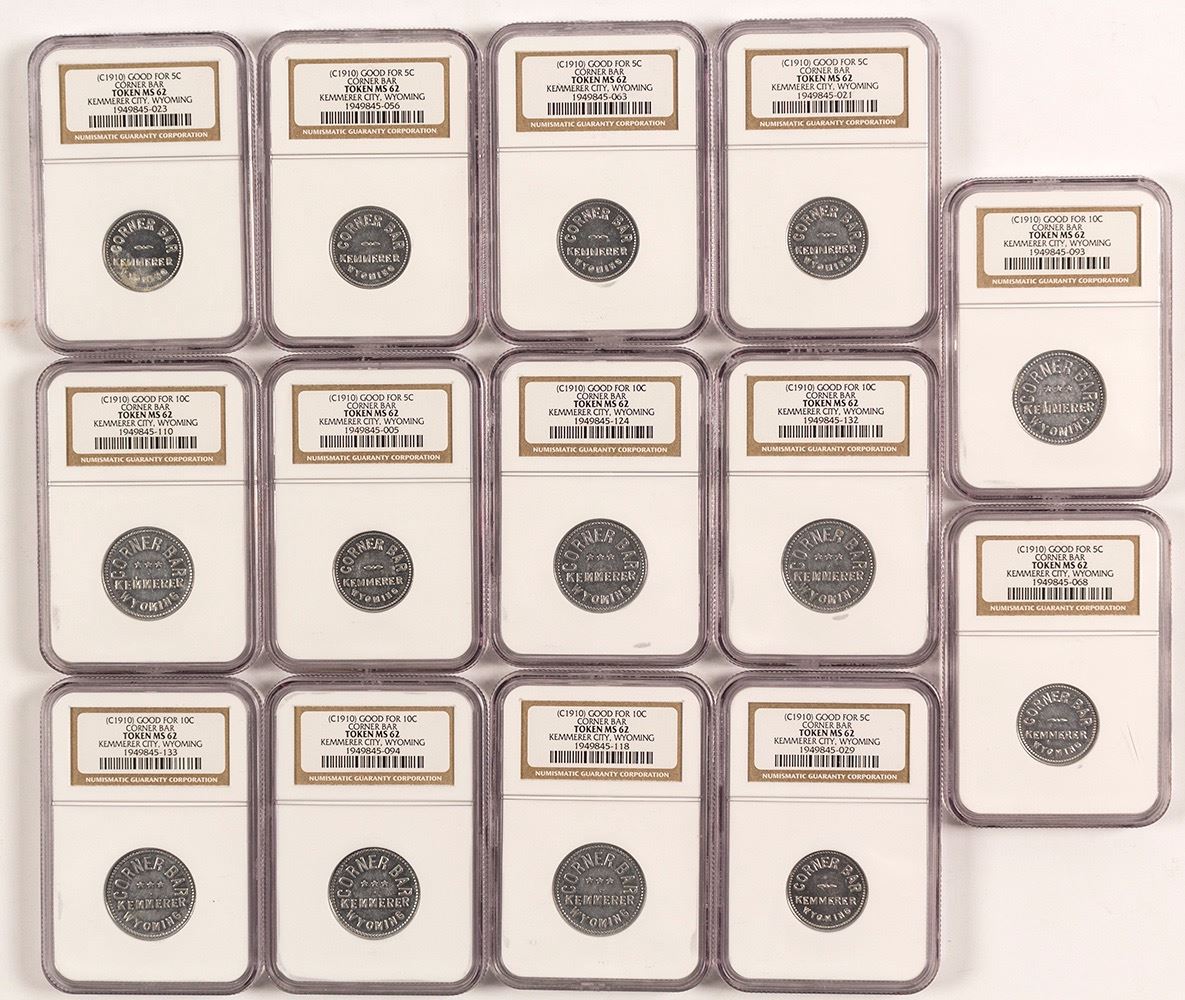14 MS60, 61, 62 and 64 tokens. 7 GF 5c, 7GF 10c Date: Location: Kemmerer City , Wyoming HWAC# 53335