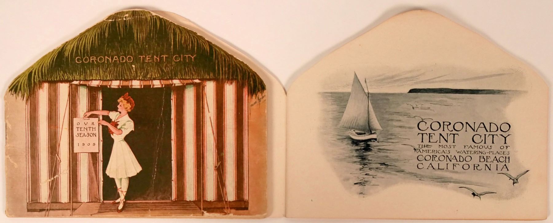 Two promo booklets from 1909 promoting stay at the Pleasure Resorts at Coronado Tent City, California. Each is 28 pp. Illustrated with text promoting stay at the resort.
