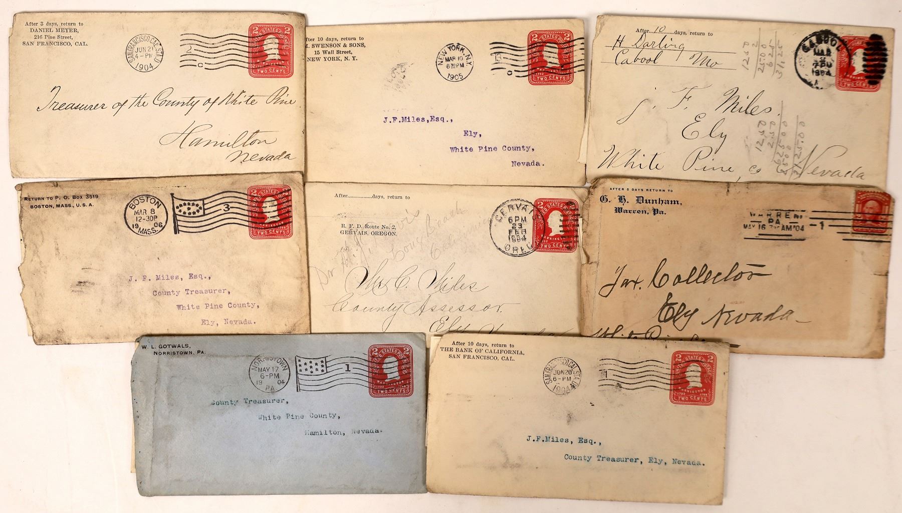Letters come from all over the United States: from Oregon to Pennsylvania, from Missouri to Massachusetts. 8 pieces. ìPlease give me any information you have on the Eagle Silver Mining Company.î Information on the Trench Gold and Silver Mining Company. Wanting to sell the Bold Mountain Mining Company land north of Warm Springs. Someone from San Francisco inquiring about their bonds. Those are the four we pulled out. (W. D. Miles Collection) Items in this collection range from fair to very nice.