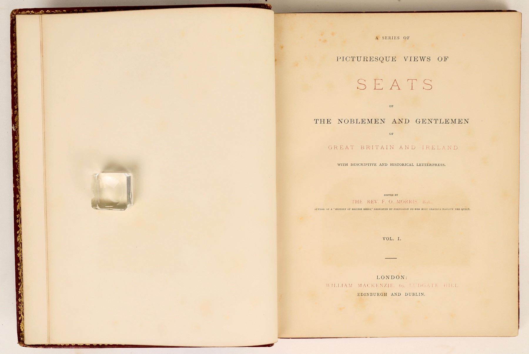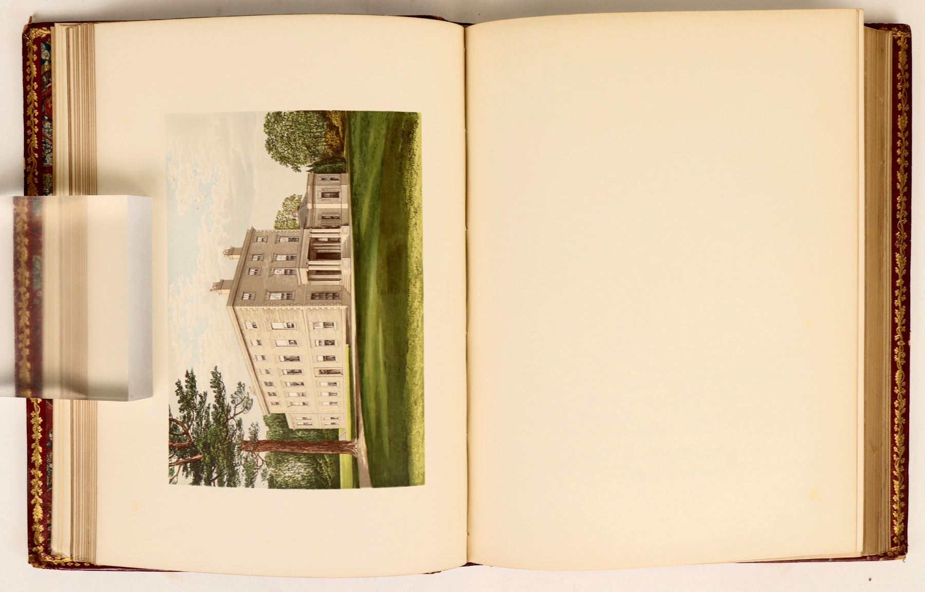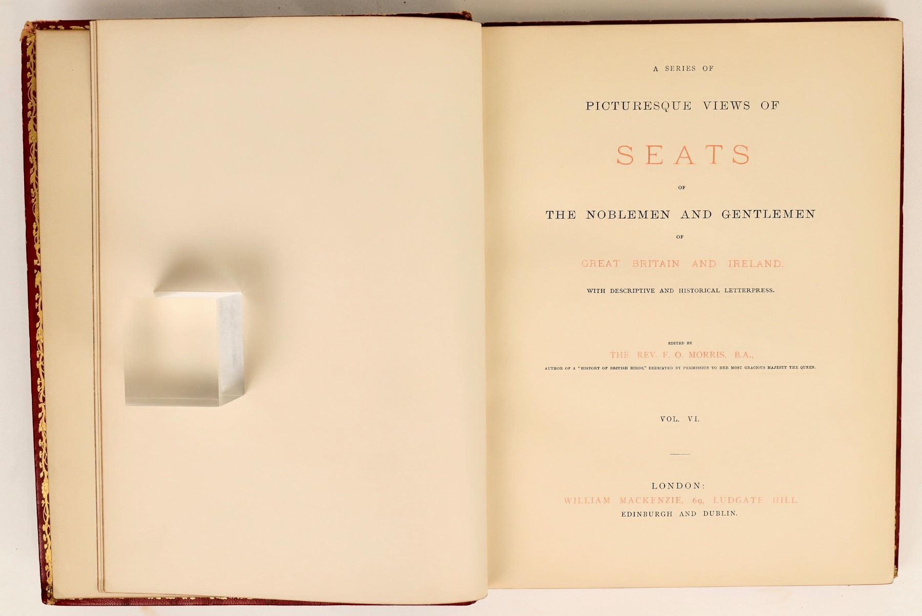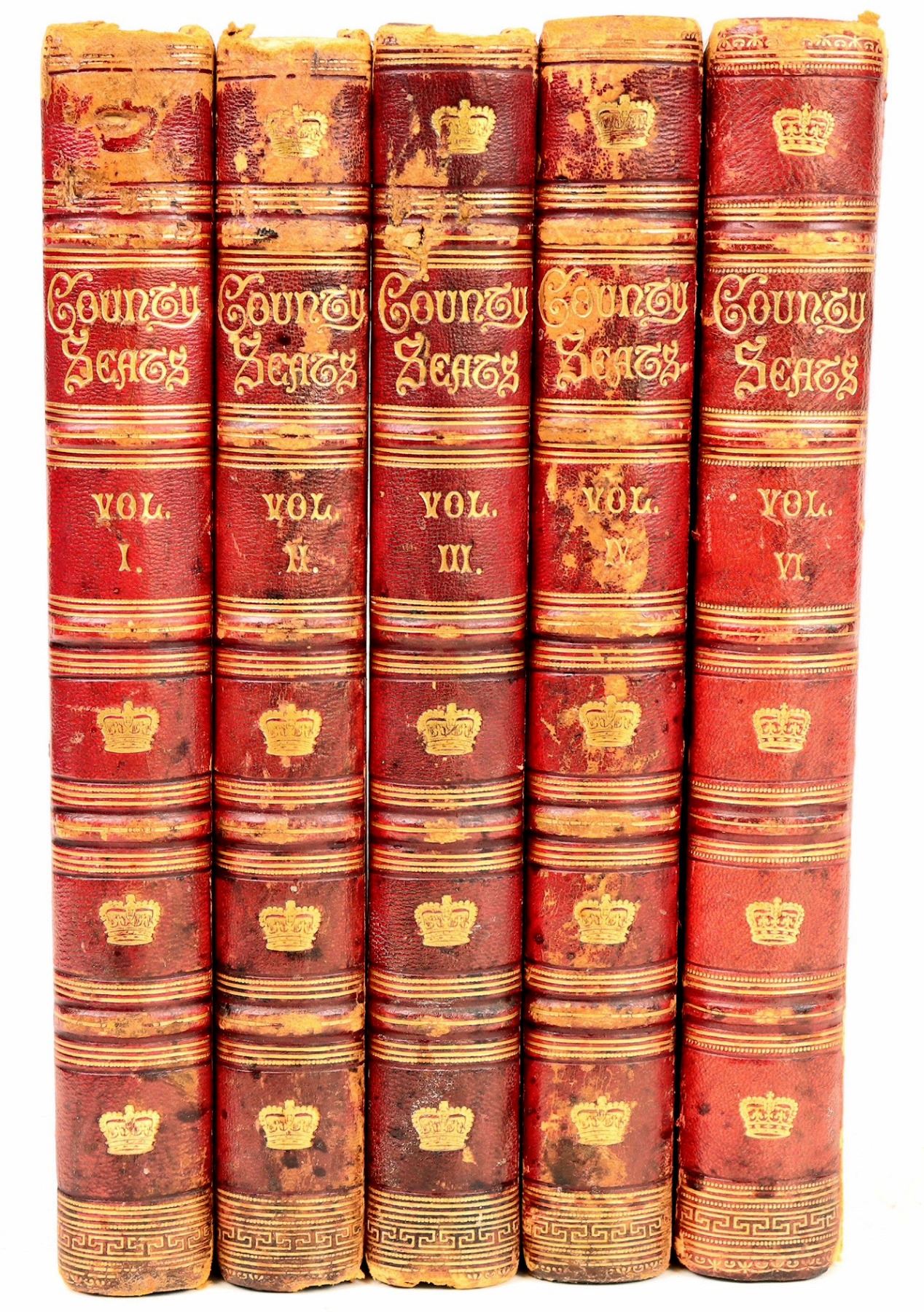 A Series of Picturesque Views of Seats of the Noblemen and Gentlemen of Great Britain and Ireland ed. by F.O. Morris (London: William Mackenzie, ca. 1860. there are six in the collection, but it appears that volume five (V) is among the missing. These are heavy duty books, measuring 9"x 11"with very ornate and thick covers. One curious note: There is a personal library sticker on the inside cover of Volume I, stating that it belongs to Henry Wilcoxon. Wilcoxon was a British subject and was famous in America as a screen actor, appearing such classics as Cleopatra (1934), The Ten Commandments (1956), Sunset Blvd (1950) and many more.The volumes are in decent condition but have a lot of bump damage on the edges.