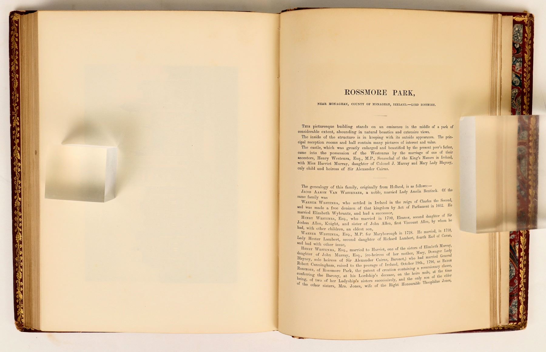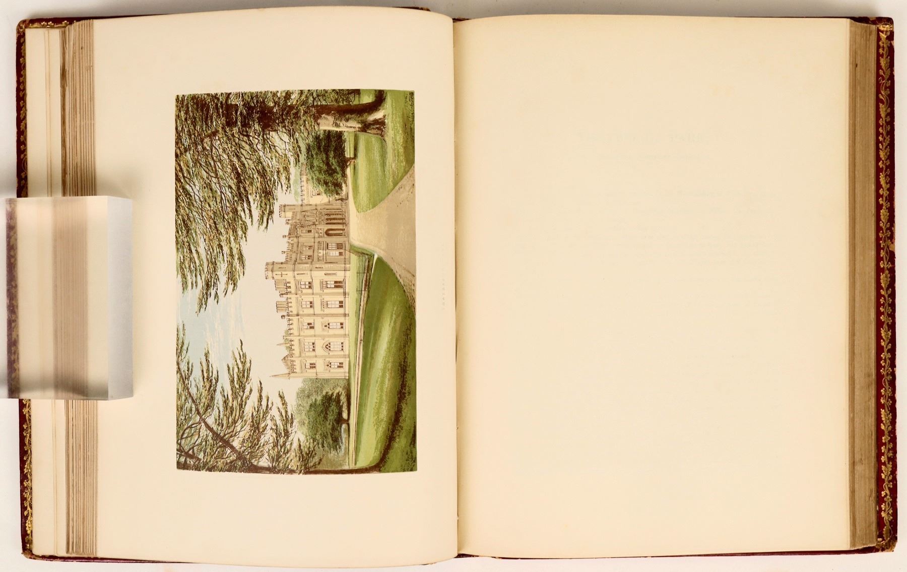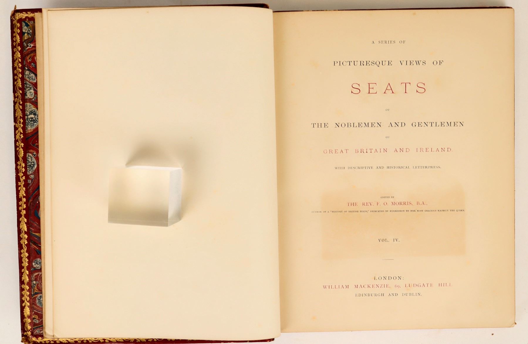 A Series of Picturesque Views of Seats of the Noblemen and Gentlemen of Great Britain and Ireland ed. by F.O. Morris (London: William Mackenzie, ca. 1860. there are six in the collection, but it appears that volume five (V) is among the missing. These are heavy duty books, measuring 9"x 11"with very ornate and thick covers. One curious note: There is a personal library sticker on the inside cover of Volume I, stating that it belongs to Henry Wilcoxon. Wilcoxon was a British subject and was famous in America as a screen actor, appearing such classics as Cleopatra (1934), The Ten Commandments (1956), Sunset Blvd (1950) and many more.The volumes are in decent condition but have a lot of bump damage on the edges.