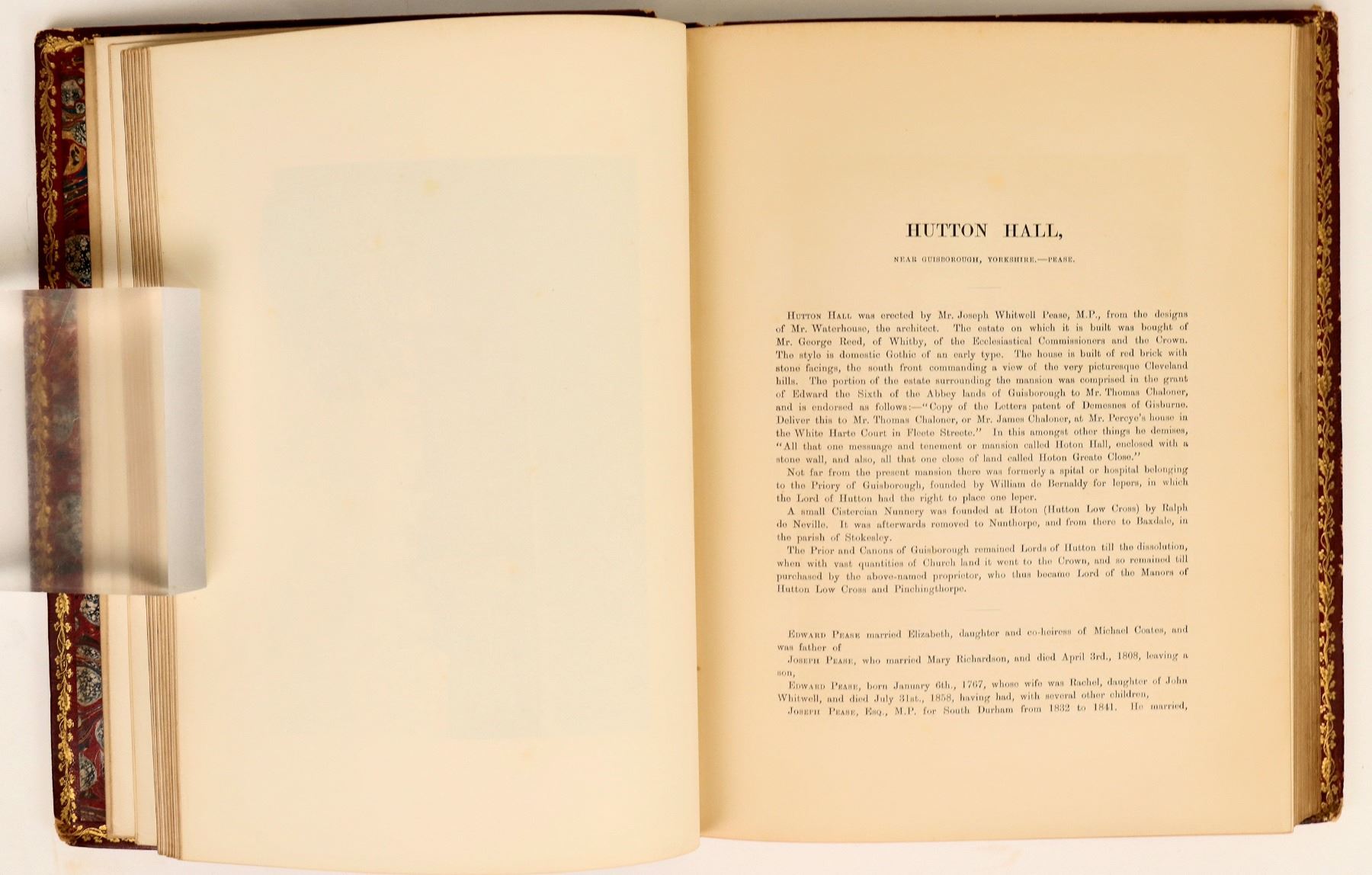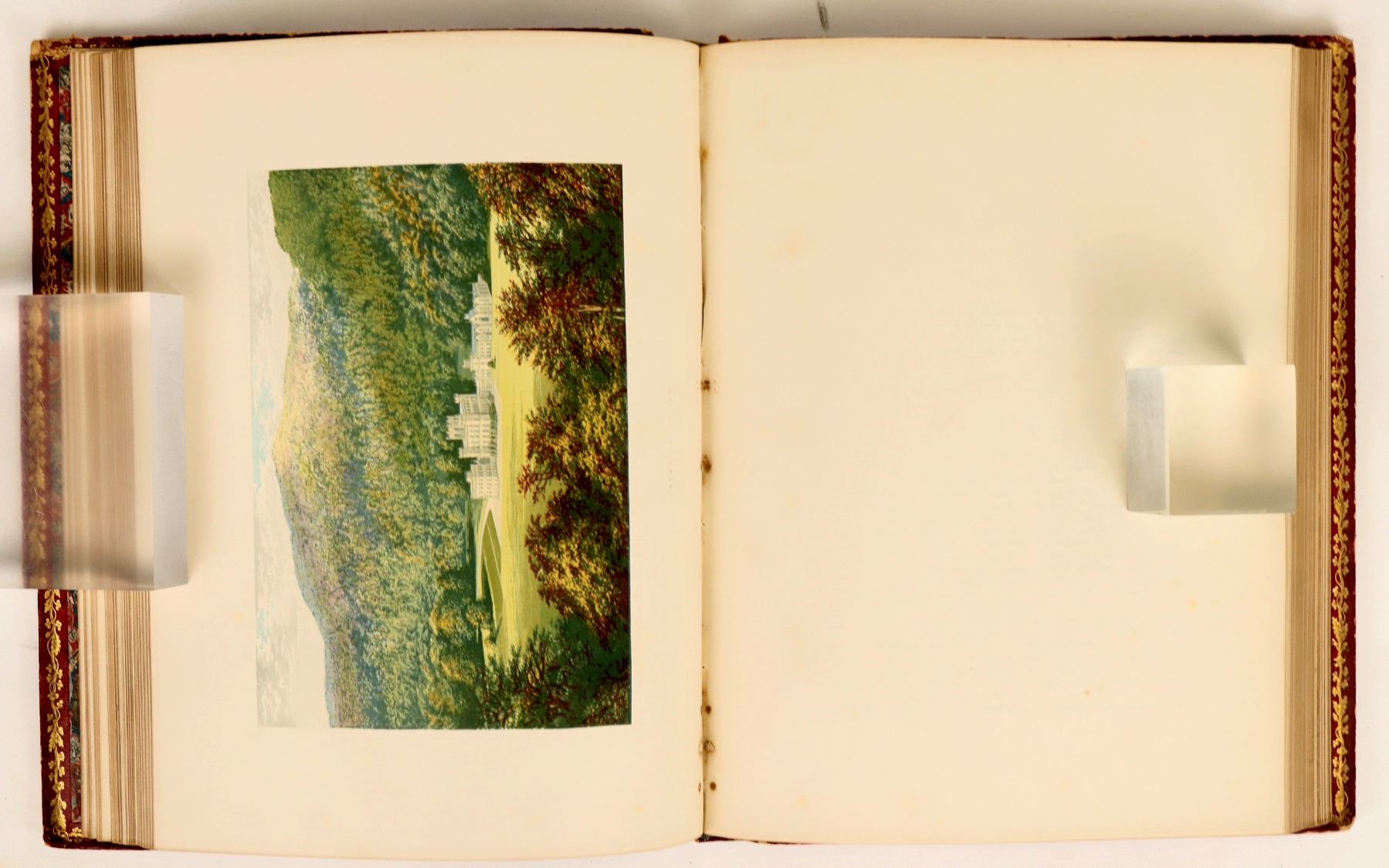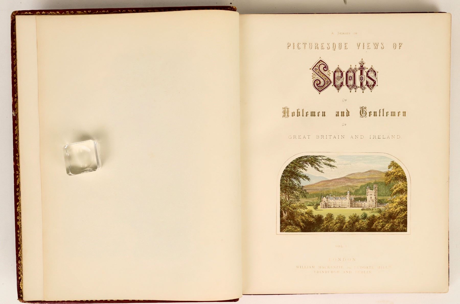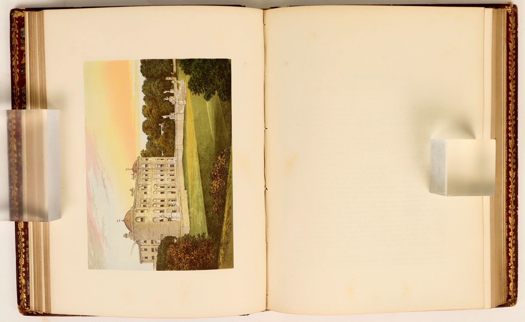 A Series of Picturesque Views of Seats of the Noblemen and Gentlemen of Great Britain and Ireland ed. by F.O. Morris (London: William Mackenzie, ca. 1860. there are six in the collection, but it appears that volume five (V) is among the missing. These are heavy duty books, measuring 9"x 11"with very ornate and thick covers. One curious note: There is a personal library sticker on the inside cover of Volume I, stating that it belongs to Henry Wilcoxon. Wilcoxon was a British subject and was famous in America as a screen actor, appearing such classics as Cleopatra (1934), The Ten Commandments (1956), Sunset Blvd (1950) and many more.The volumes are in decent condition but have a lot of bump damage on the edges.