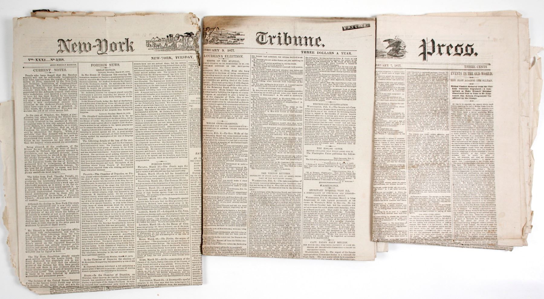 Crazy Horse, a Lakota Chief who fought with Sitting Bull at the Little Big Horn, was in numerous battles with whites until his surrender in the beginning of summer 1877. three months later, soldiers killed him in a Fort prison camp. One of the papers (New York trib, 2.9.1877) discusses the defeat of Crazy Horse's band, but not his capture. Another (Philadelphia Press, 2.7.77) discusses the same battle. a third (3.28.76, New York trib) discusses the destruction of Crazy Horse's camp.