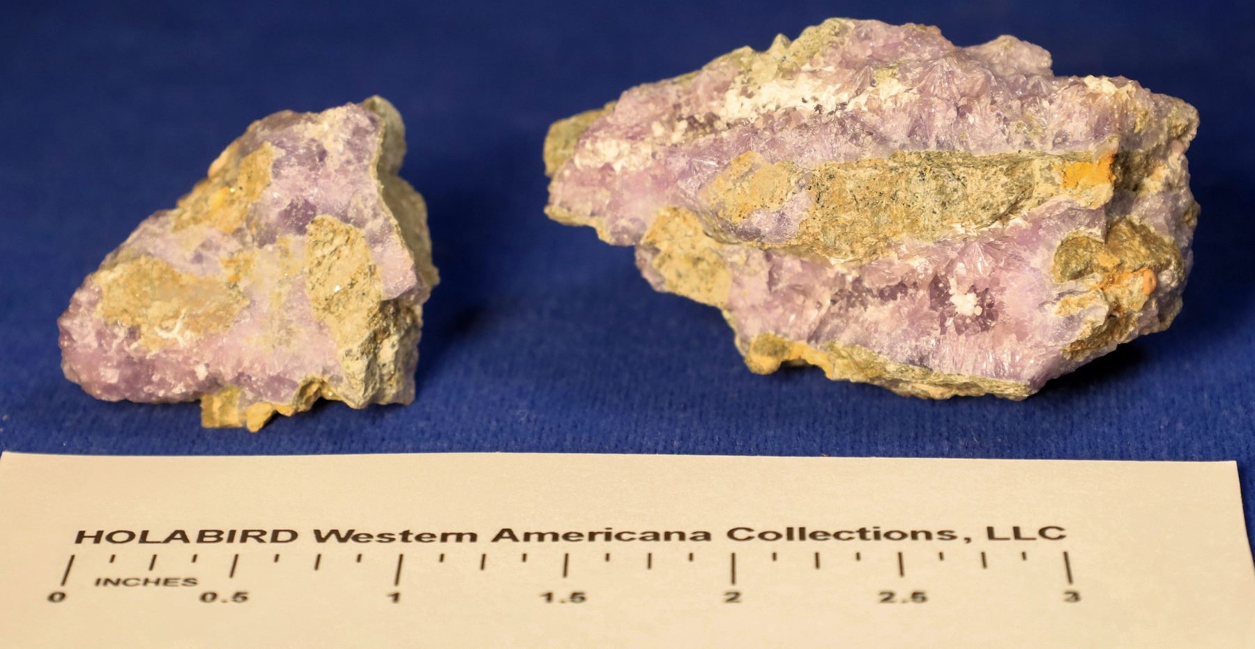 Lot of 2. Two rare Creedite specimens from the Hall Molly Mine in Nye County near Tonapah. The nations best specimen of lavender-colored creedeite was found at the bottom of one of the pits.