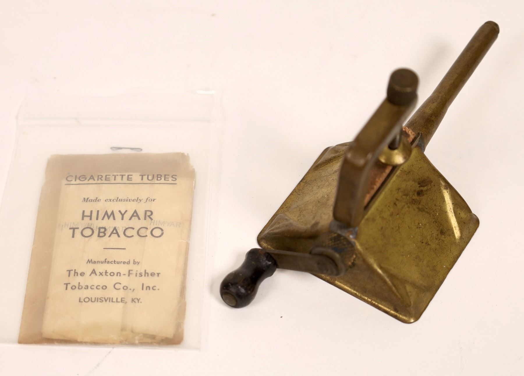 Brass auger type, vintage, Crescent Marvel Cigarette Machine. Included are paid stamp cigarette tubes. Unopened bag. Manufactured by The Axton-Fisher Tobacco Co., Inc.