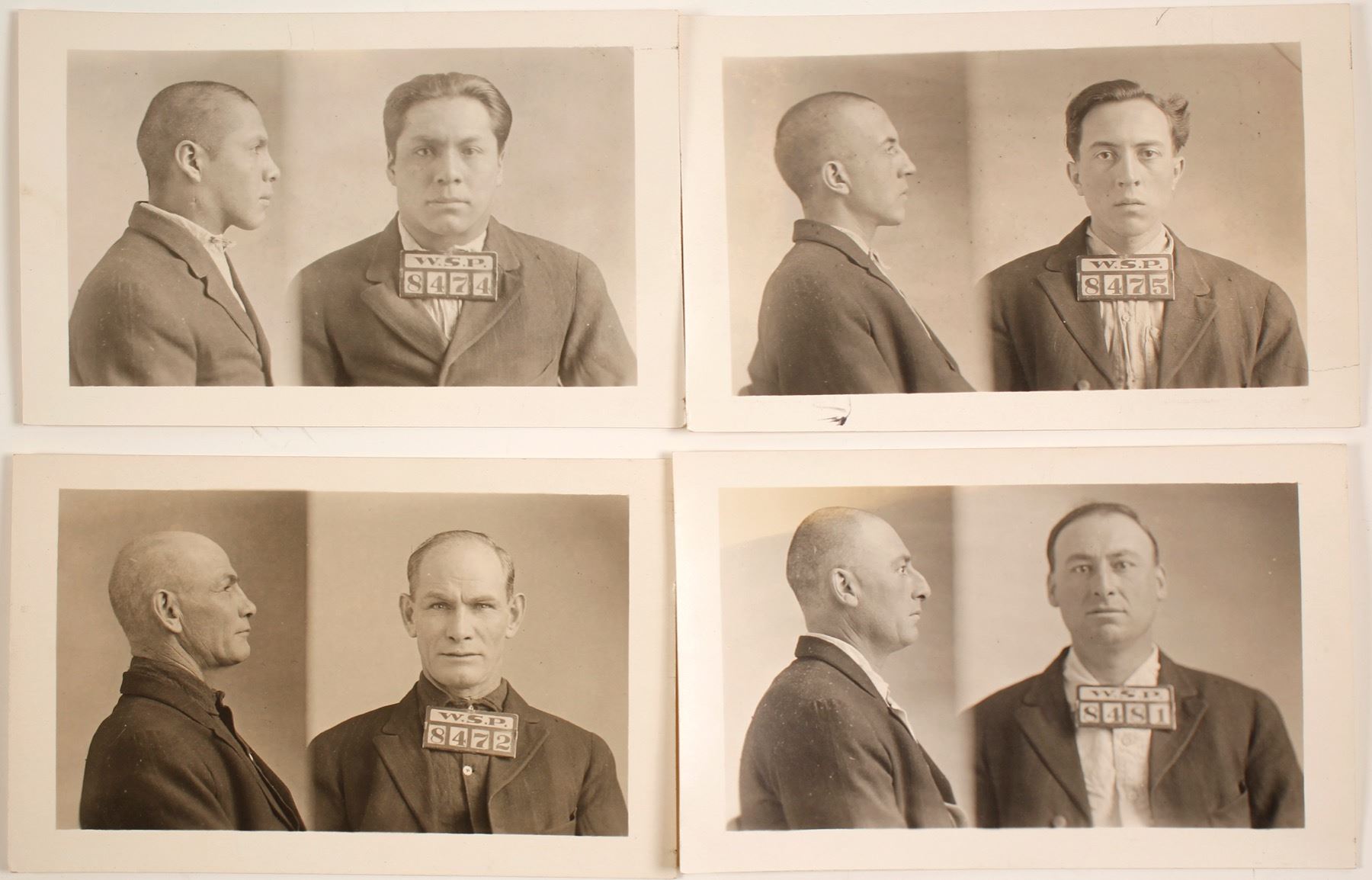 4 male mug shot postcards from WS Police. 1 has .7" tear and ink. State: City: Date: HWAC# 86409