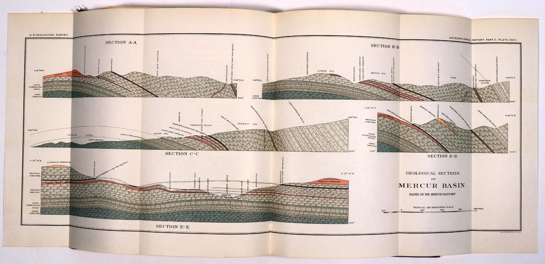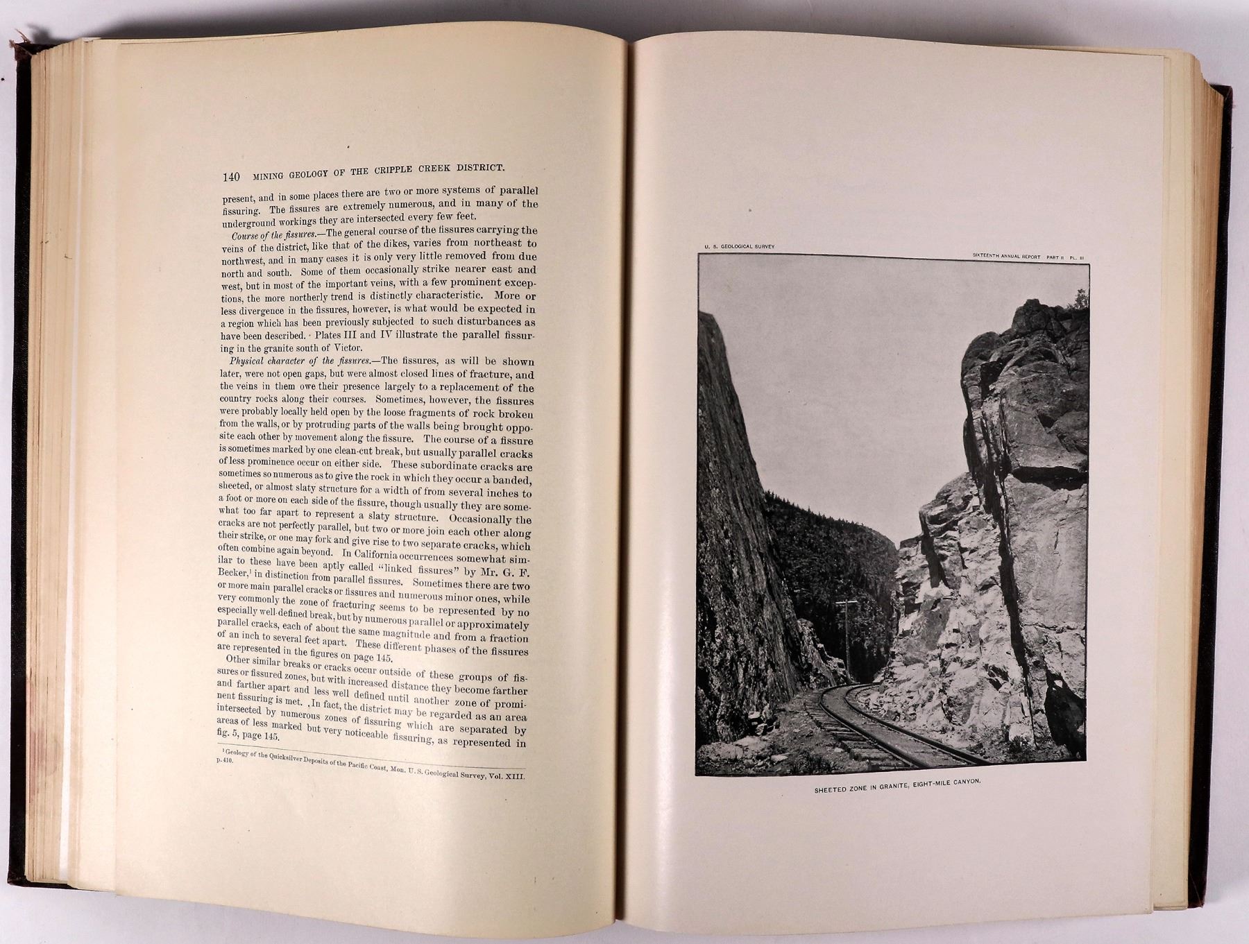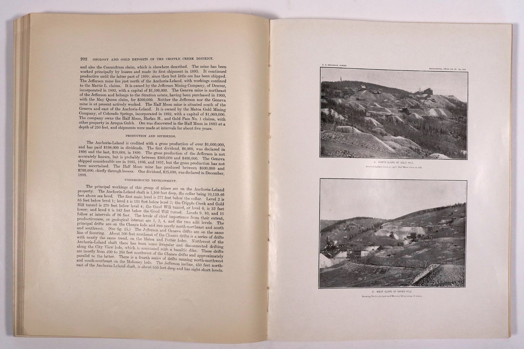 Hardcover 1895 Annual Report of the USGS to the Secretary of the Interior, Part II, Papers of an Economic Character, 598pp with index. Softcover 1906 USGS Geology and Gold Deposits of the Cripple Creek District, Colorado, 516pp with index. Back envelope empty.