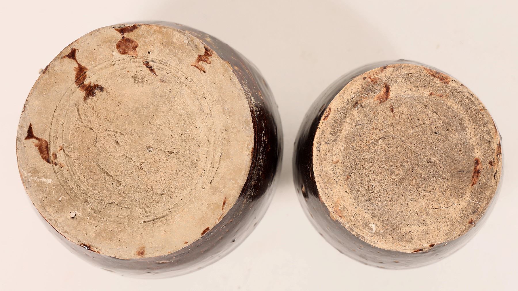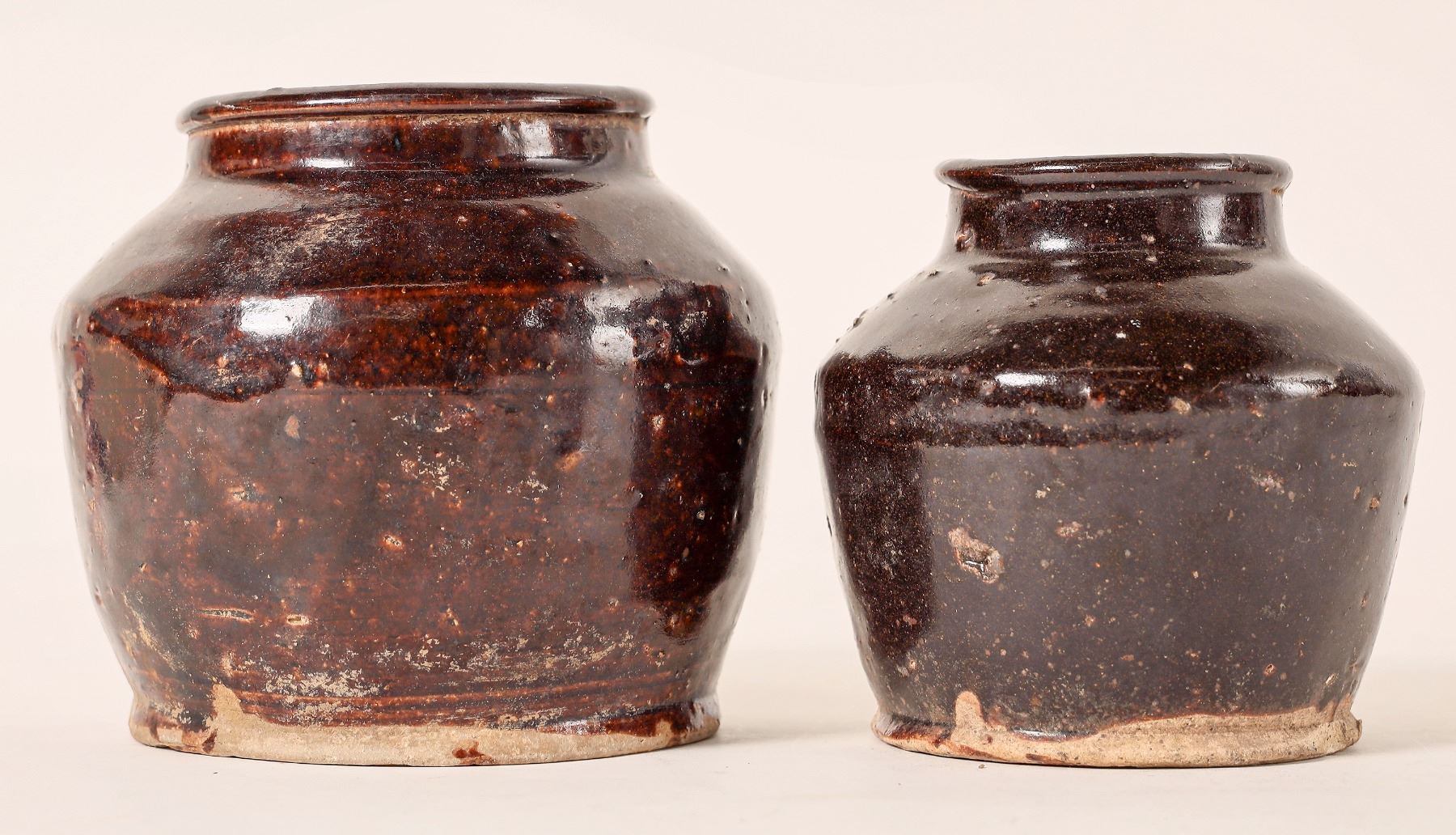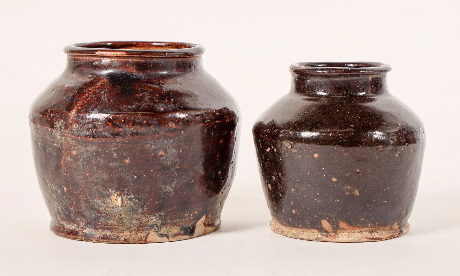 Pair of pots. 1.) 5" tall, 4.5" diameter 2.) 5 1/2" tall, 5 3/4" diameter. [