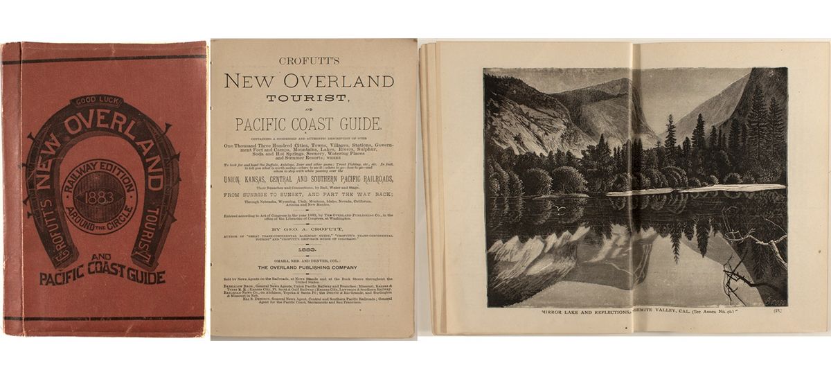 The author is identified as George A. Crofutt. It was produced by the Overland Publishing Co. in Omaha, Nebraska. It has 275 pages along with a large map of the Complete Railway System of the Trans-Missouri Country, dated 1882. This map is located on a pocket on the back of the front cover. The front cover is slightly loose and has a crease towards the spine. The pages are not loose and have little wear. This guide provides several detailed and large images pictorials of the American West. There are 26 other listings of this edition in OCLC. Rarity [v].City: County: State: Date: