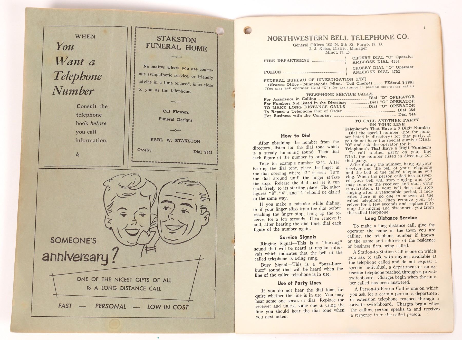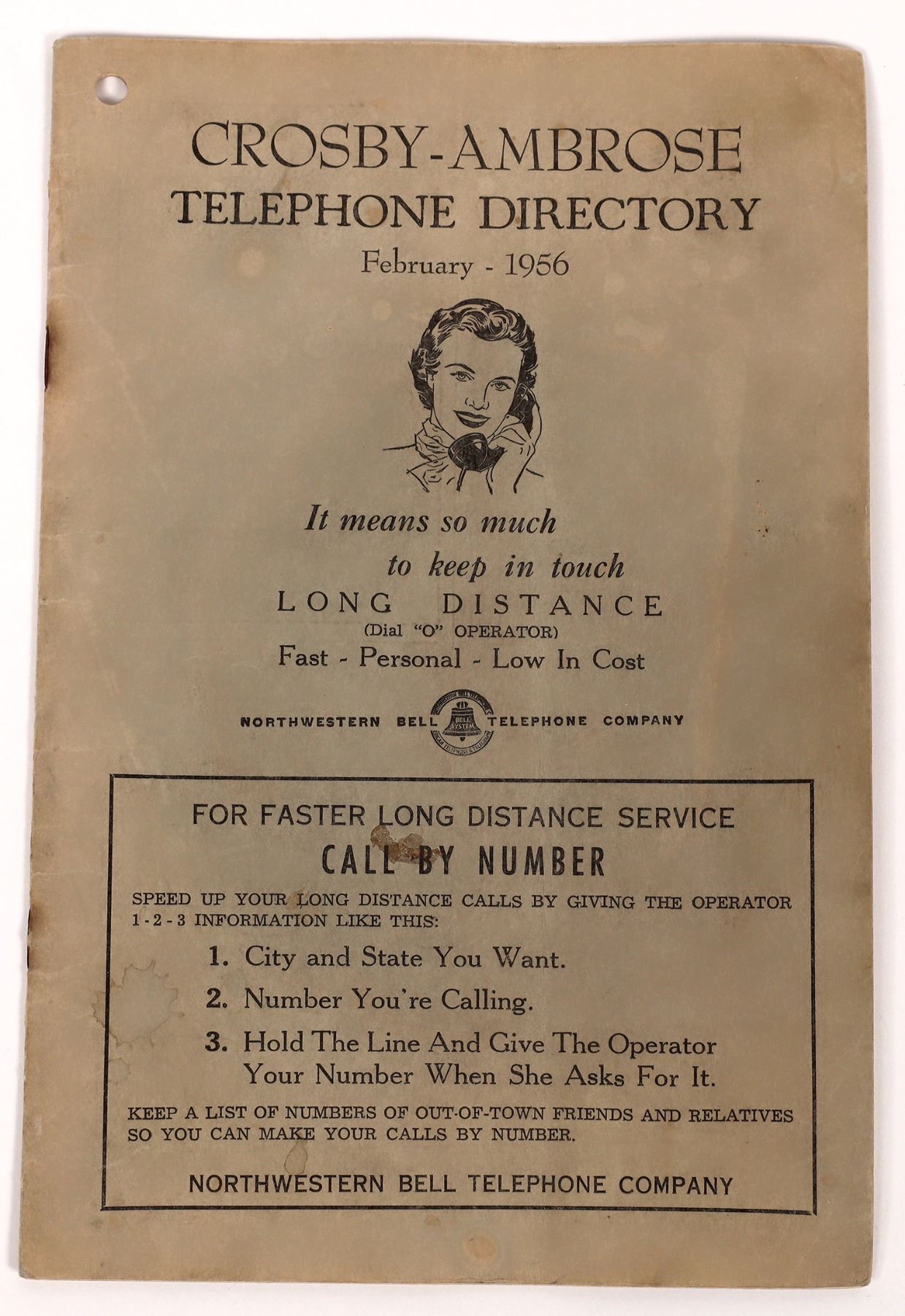 1956 Crosby-Ambrose telephone directory, 16pp with a few pencil notations. North Dakota