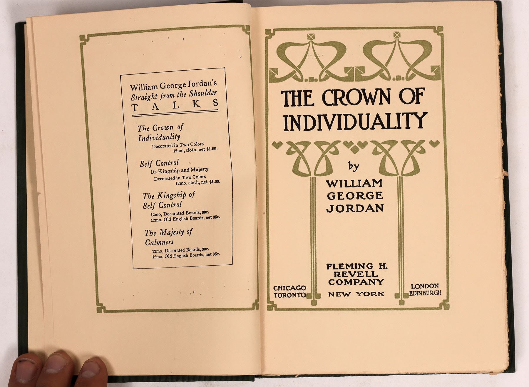 Hardcover 1909. Discusses the importance of individuality and explores the ways it can affect one's life and general happiness. 224pp.