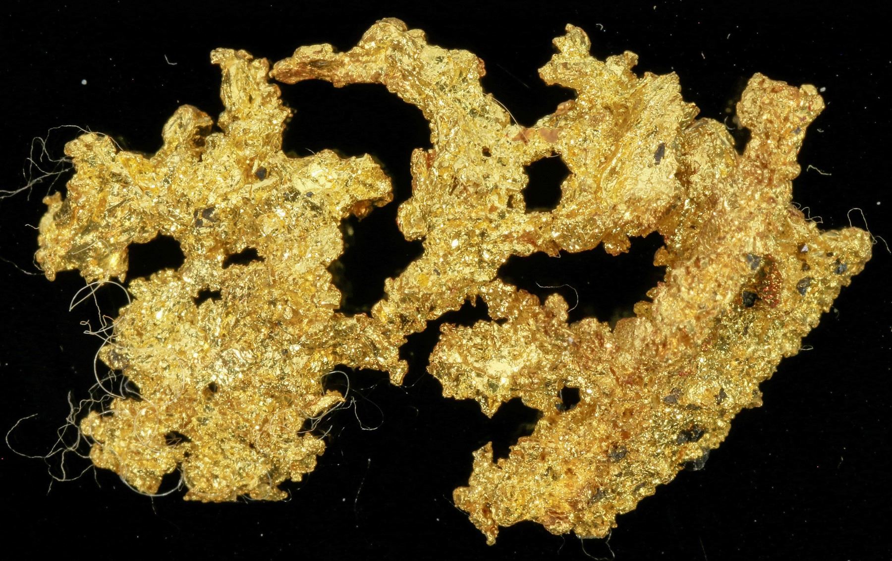 Beautiful gold piece 3/4 of an inch by 1 1/4 inch. 7.9 grams, with unknown black mineral.