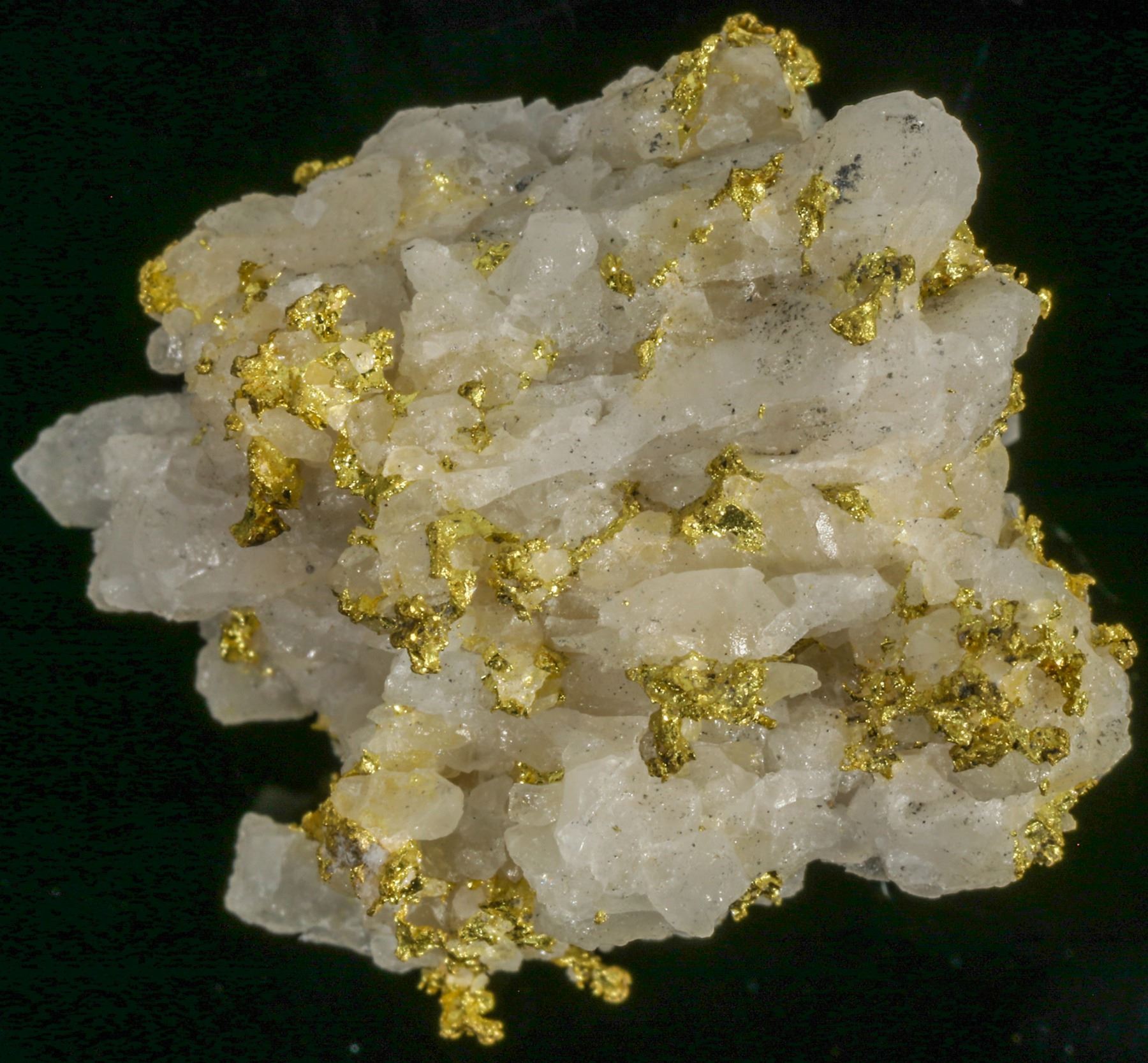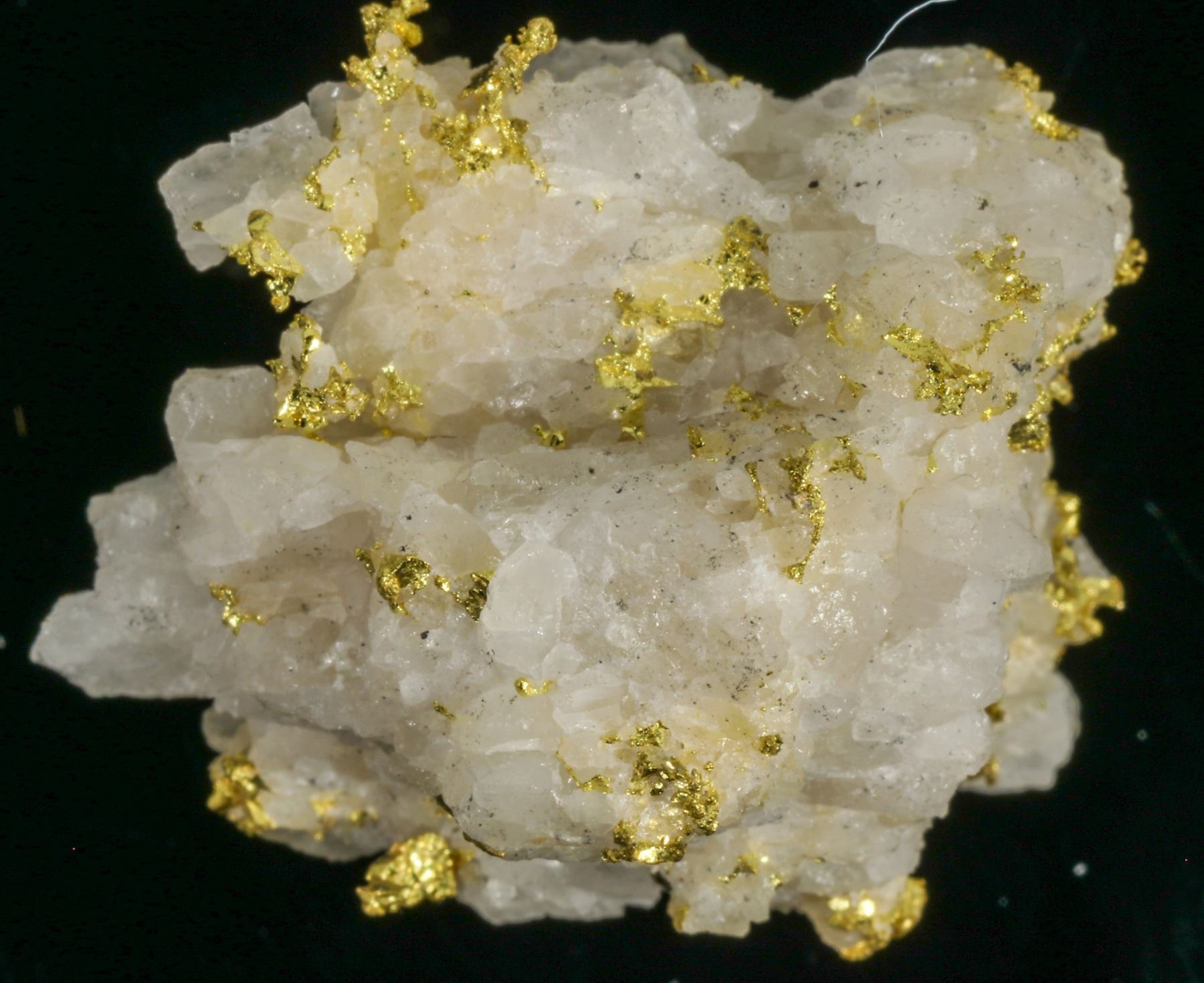 Stunning native gold specimen from the "million dollar pocket" at the Original Sixteen to one Mine. The specimen shows bright wire and crystalline gold in pure white quartz. About 1/2" around. Overall weight 10.7 grams