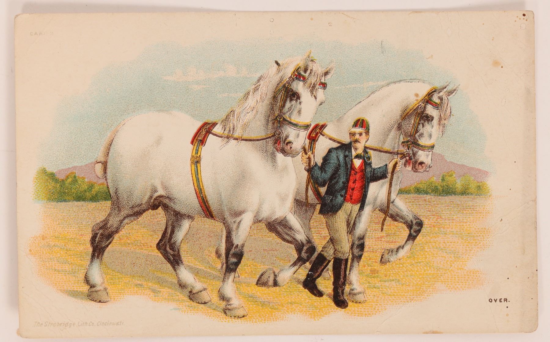 $5000 to be distributed to exhibitors at the Cuba Fair & Races. Horse Races, Hose Races & Bicycle Races. Gentleman leading two draft horses on reverse. 5 x 3 1/2 inches. [Cuba New York