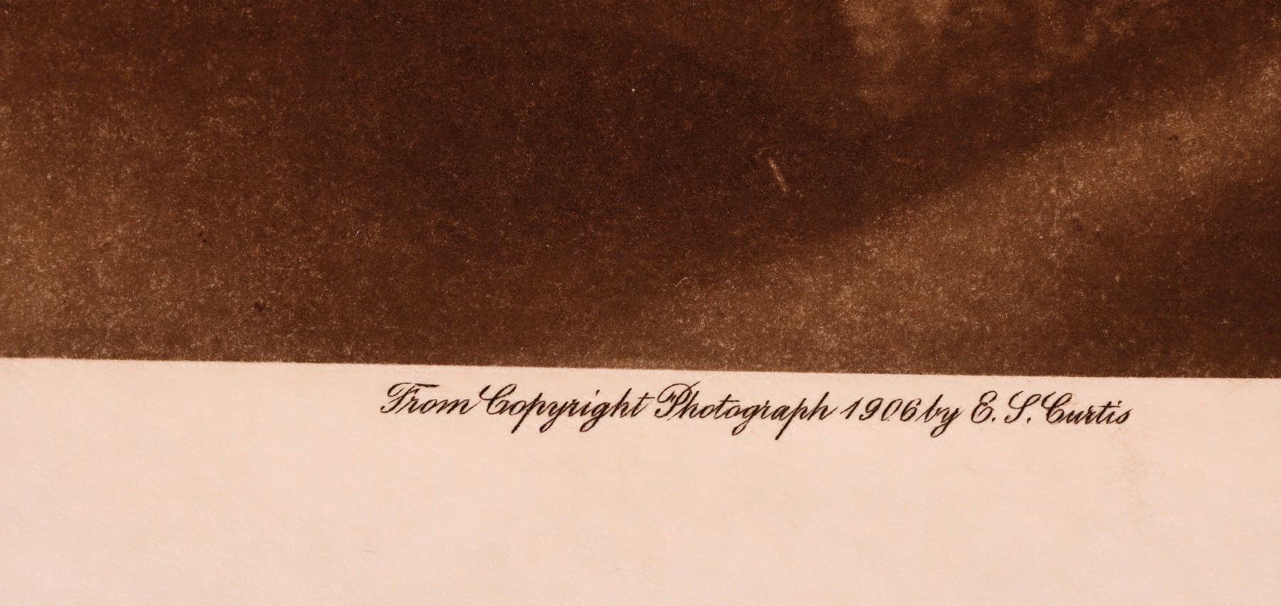 Edward Sheriff Curtis published his masterwork, "The North American Indian," from 1907 through 1930. This limited edition intaglio photogravure print (#65 of 228) was sold by the Gallery of The North American Indian in Santa Fe, New Mexico and comes in the original mailing tube, still wrapped in the original plastic, with Certificate of Authenticity. Named "The Potter", copyright 1906. Hopi woman painting small pottery vessel. The 19 x 23 inch print was struck on classic hand-made paper from the original copper plates produced by E.S. Curtis. "Every visitor at East Mesa knows Nampeyo, the potter of Hano, whose creations excel those of any rival. Strangers wander into her house, welcome although unbidden, but Nampeyo only works and smiles. in the plate, her paint-stone occupies the central foreground."--Edward S. Curtis. Gary Bracken Collection