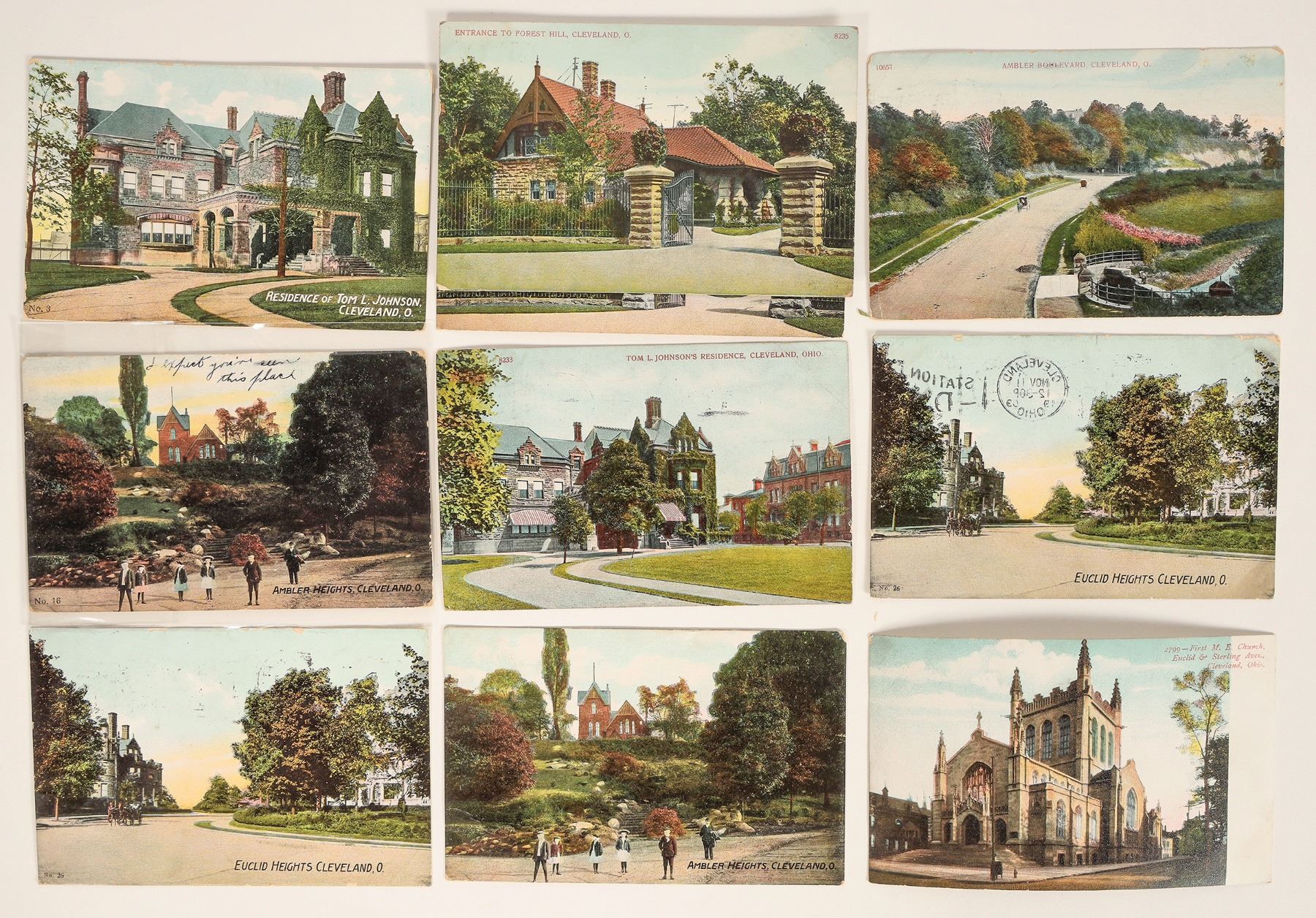 10 Cleveland residences postcards. Ambler Blvd., Euclid Heights, church, Tom L Johnston house, Forest Hill, Ambler Heights.[ Cuyahoga County Ohio