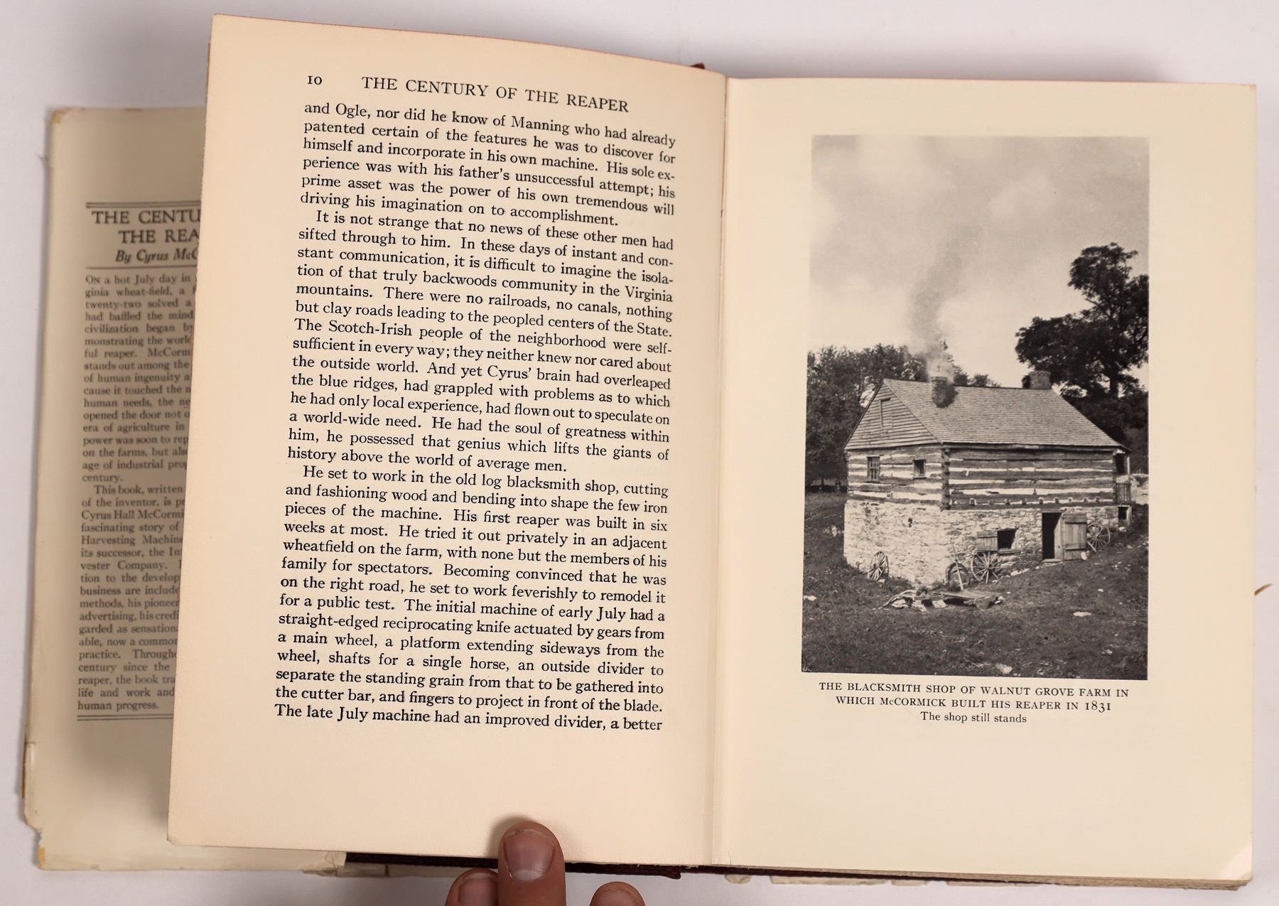 2 hardcovers. The Century of the Reaper by McCormick. Cyrus Hall McCormick by Hutchinson. He was American inventor and businessman who founded the McCormick Harvesting Machine Company.