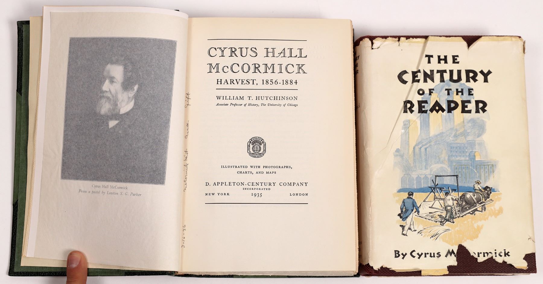 2 hardcovers. The Century of the Reaper by McCormick. Cyrus Hall McCormick by Hutchinson. He was American inventor and businessman who founded the McCormick Harvesting Machine Company.