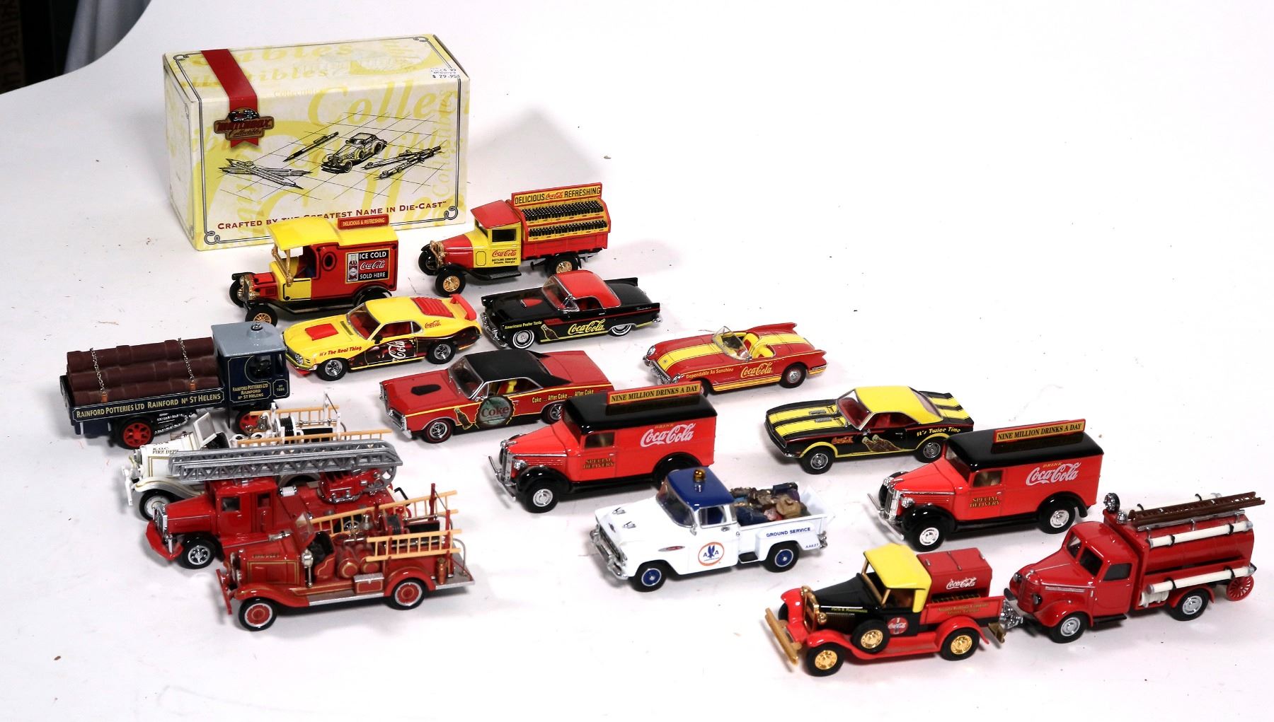 Lot of 17. 1. An entire collection of Coca-Cola Dinky and Models of Yesteryear all in one spot . The most popular muscle cars : 1953 corvette, ‘55 T-bird, ‘67 GTO, ‘70 Boss 429, ‘68 Camaro SS. Before muscle cars : ‘32 Ford AA truck, two ‘12 Model T delivery van one NIB , ‘30 Ford Model A p/u, ‘37 GMC Van (2). Fire trucks : 1932 Mercedes, ‘33 REO water tanker, ‘29 Chevrolet ladder (2), ‘57 Chevrolet Amer. Airline ground service , ‘29 Garrett Steam Wagon. No boxes. All are in excellent to near new cond. w/no missing parts. This would be hard to find and put together if you are a collector.