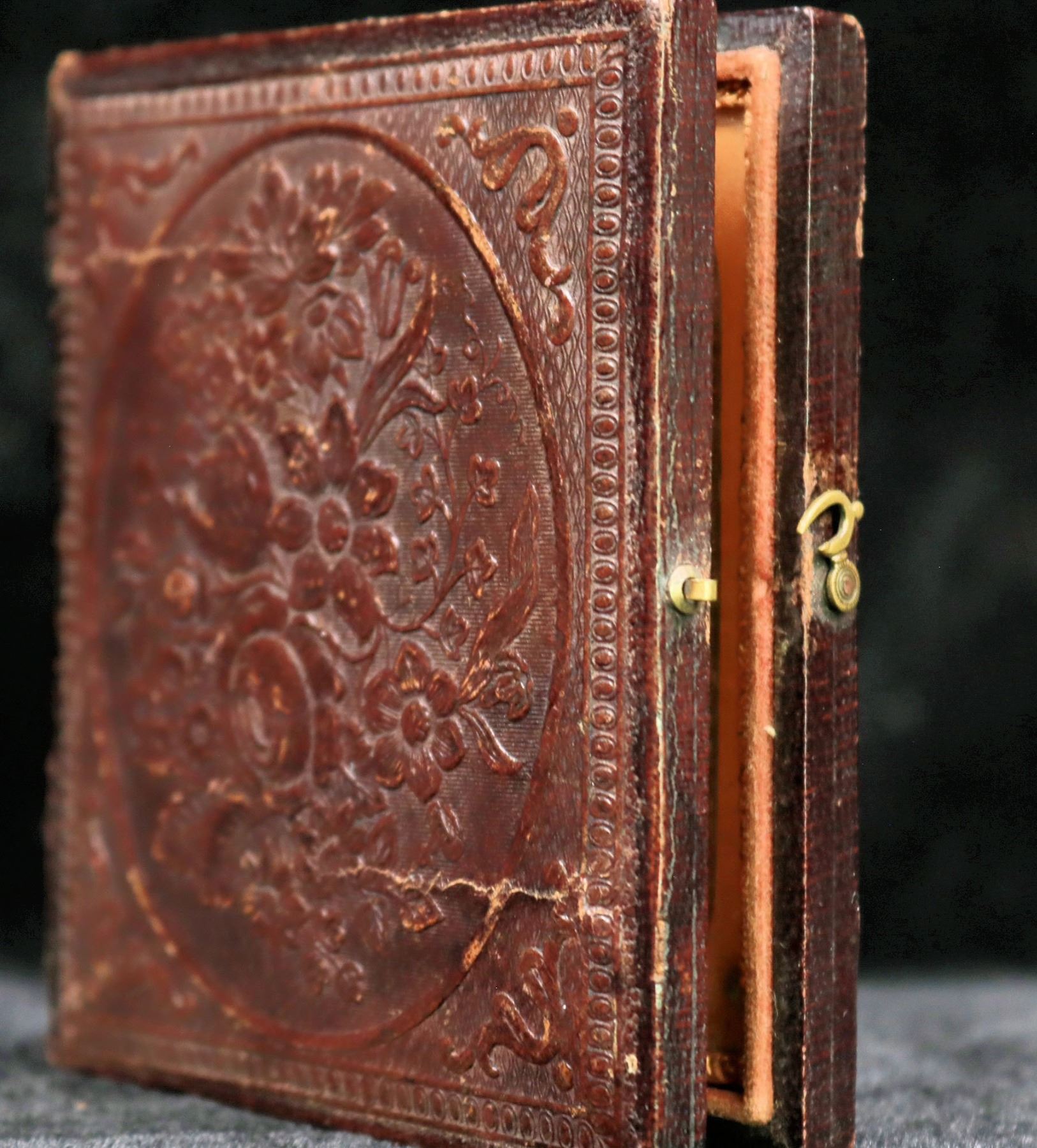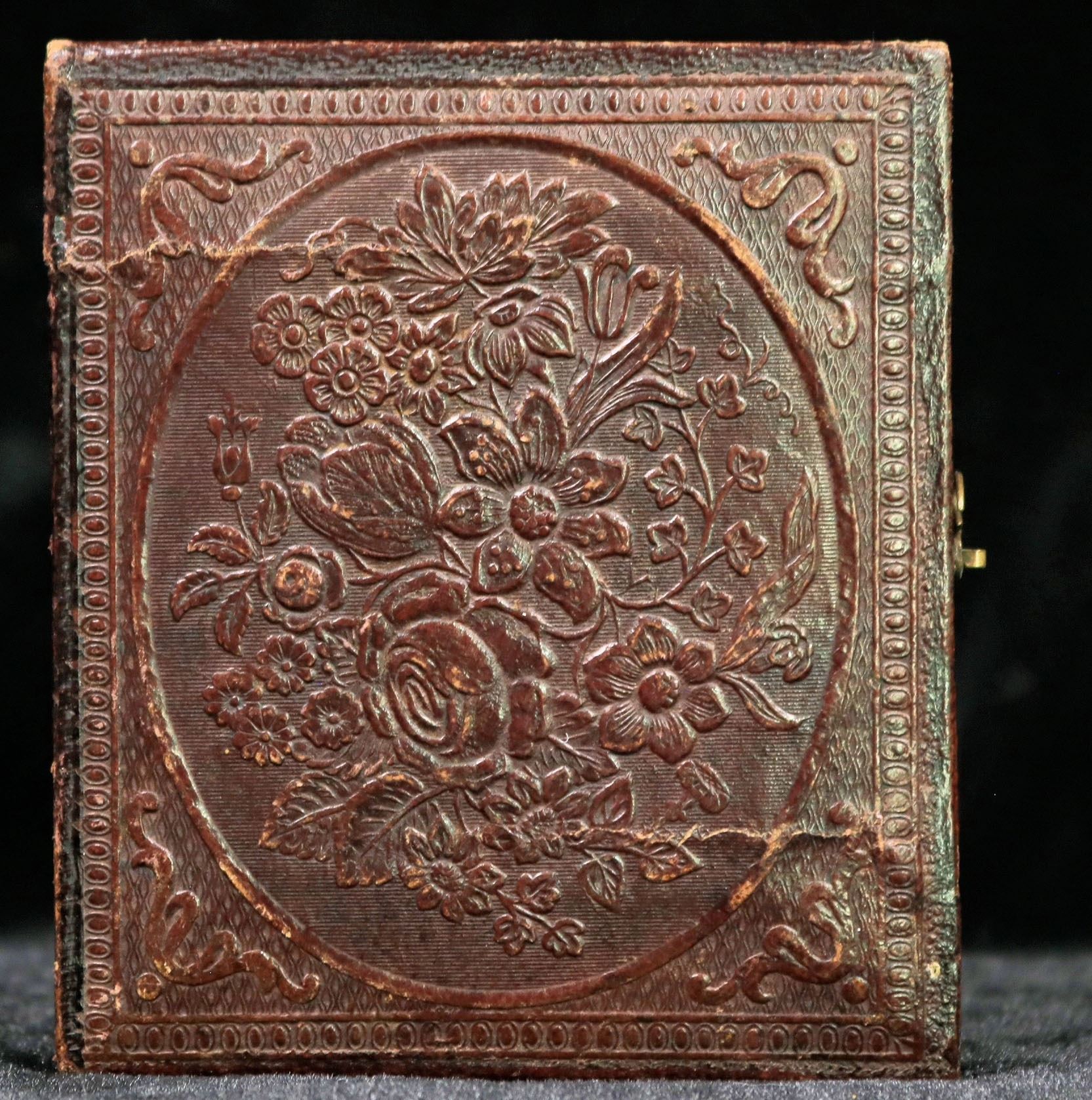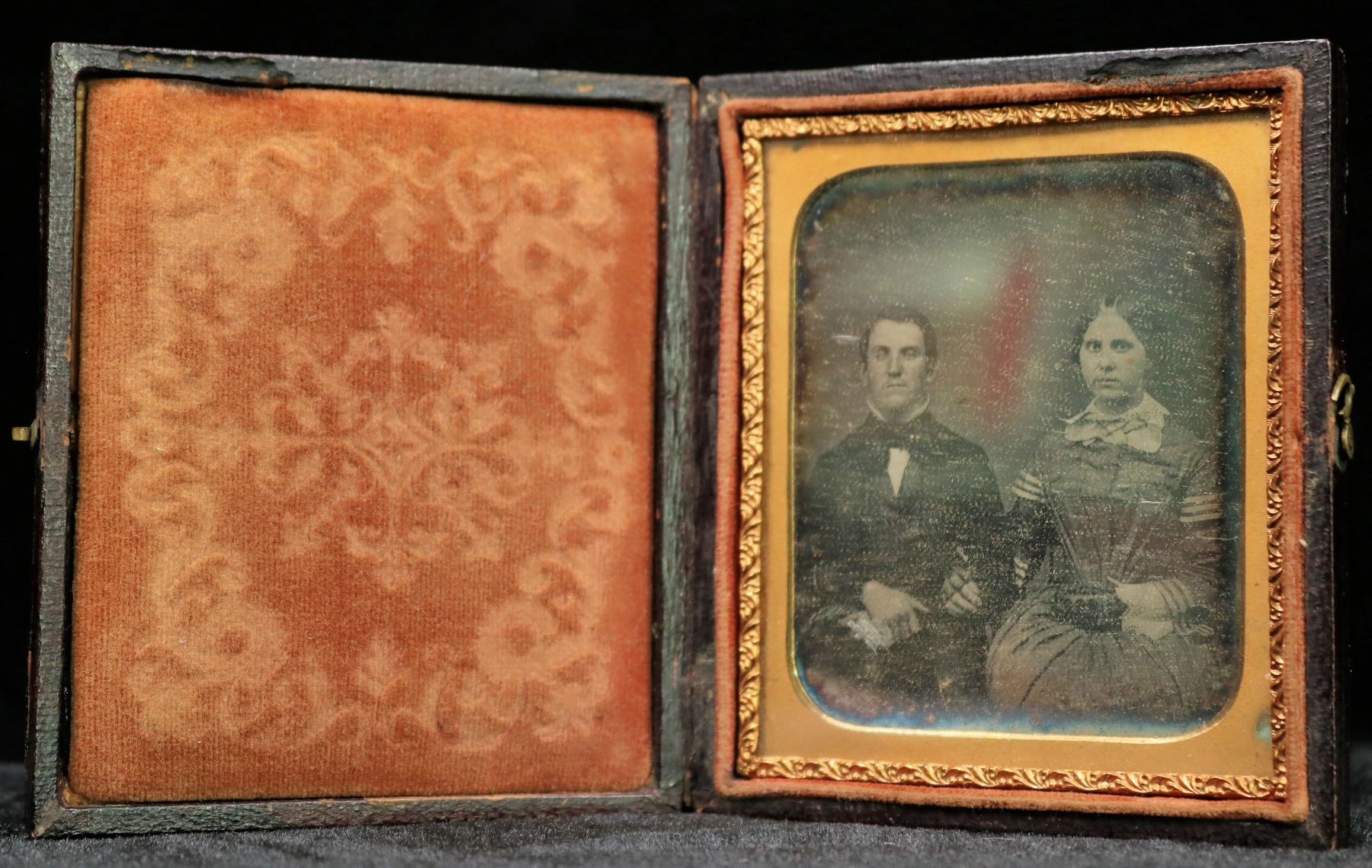 This is a 1/6 plate daguerreotype of a young couple. The case is leather over wood and measures 3"x 4". It's in nee condition. Please see photos for more details.