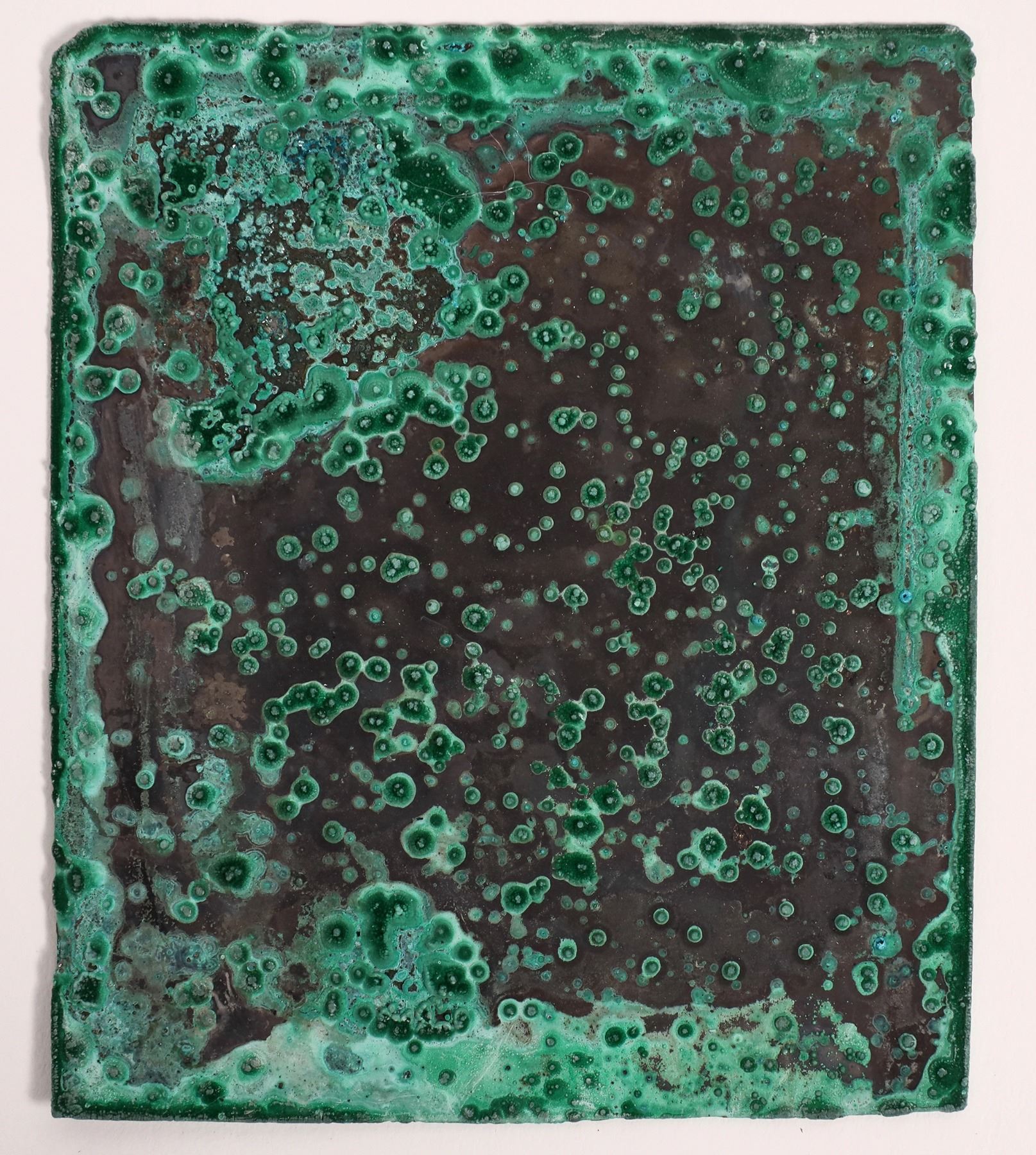 This Daguerreotype is lacking a visible image. Both sides have accumulation of malachite due to the copper in the metal plate. 3.25x7.25".