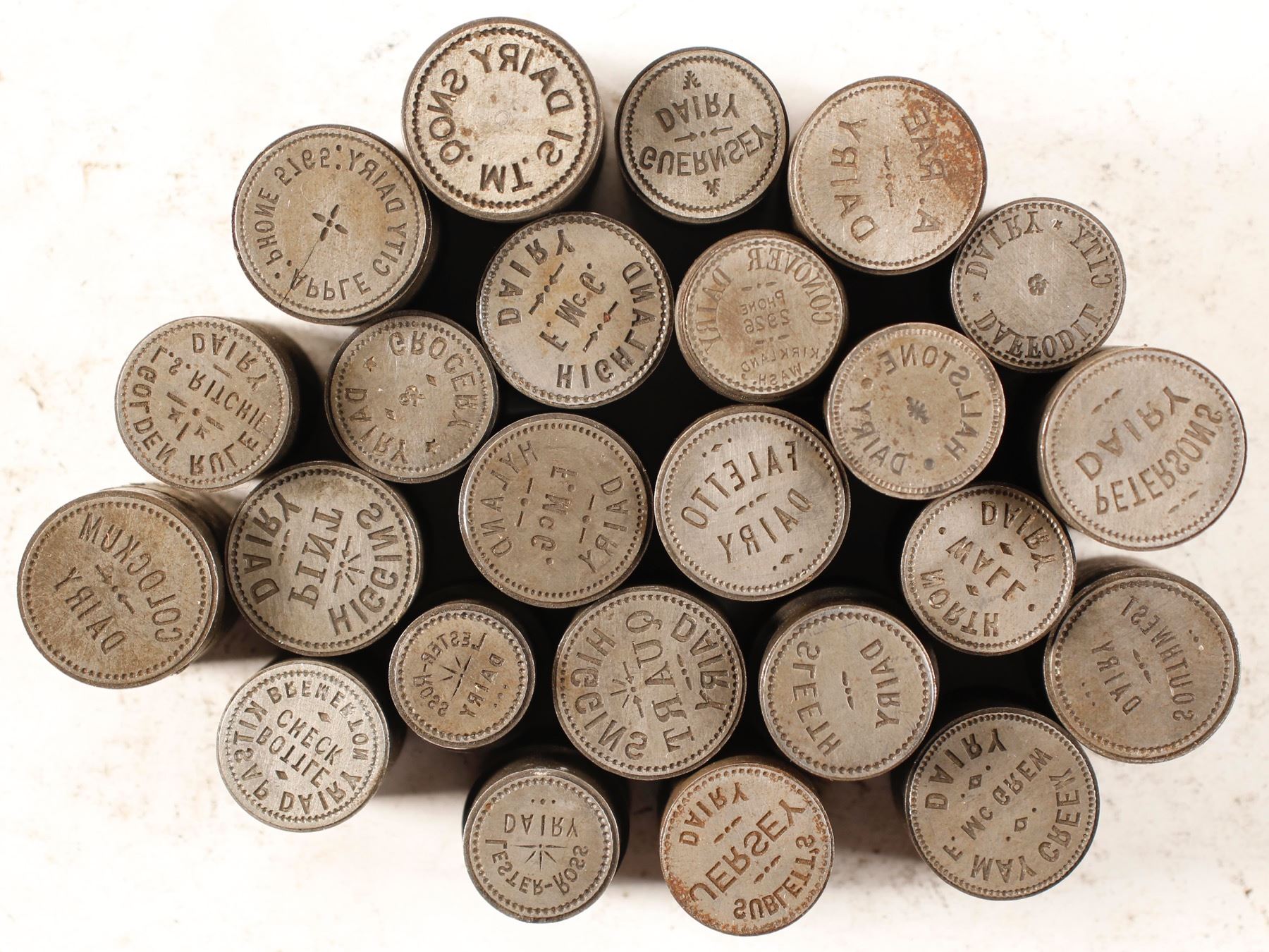 Approx 20 Dairy tokens from unidentified states. 16-24mm: Lester Ross Dairy, Southwest Dairy, Highland Diary, May Creek Dairy and more. Northwest Territorial Mint Historical Token Die Collection State: City: Date: c1903-1950 HWAC# 86201