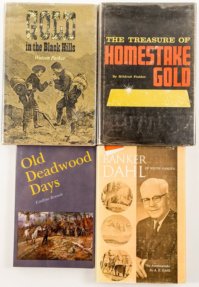 Banker Dahl of South Dakota by Dahl, The Treasure of Homestake Gold by Fielder, Gold in the Black Hills by Parker, Old Deadwood Days by Bennett (Al Adams Gold Rush Memorabilia Collection) Date: Location: South Dakota HWAC# 58630