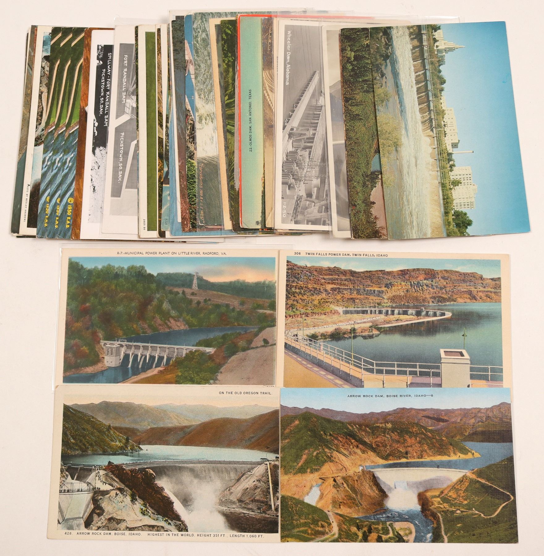 Approx 40 dams postcards, American Falls, Wheeler Dam, Fort Randal and more, several chromolithoSalvatore Falcone Collection