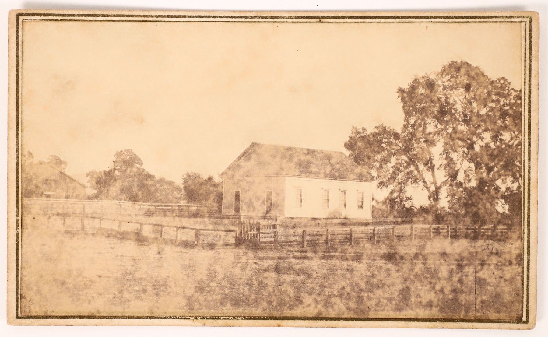 CDV of a school or house, marked Danville, California on verso with additional illegible writing. 2.25x3.75". California Danville