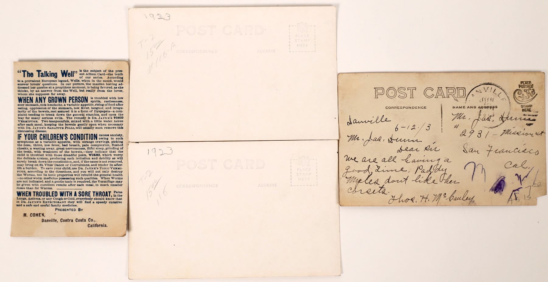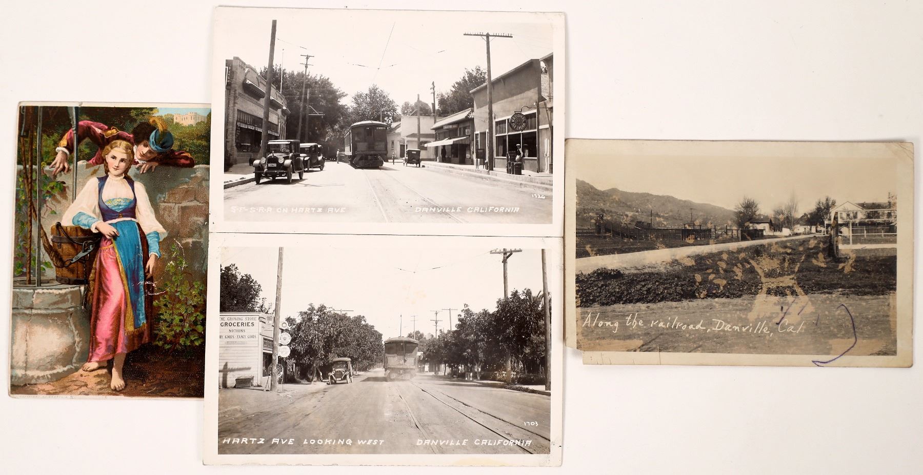 3 Danville RPC's-2x Hartz Ave, railroad. M Cohen trade card. California Danville