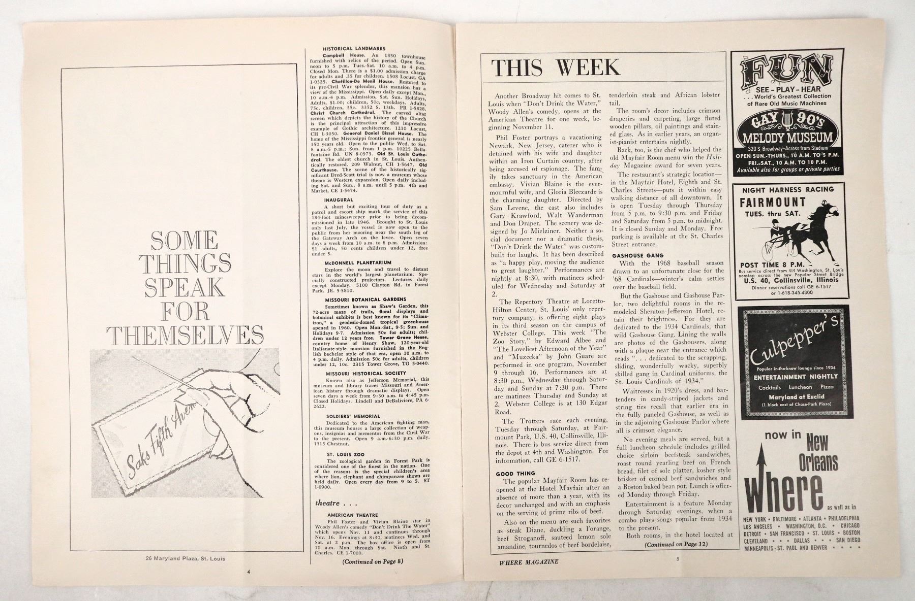 1968 Woody Allen play program autographed by Dave Williams, #80 St. Louis Cards, sadly he did not score any touchdowns that year. Also, Irv Goode #55, a left guard on the kicking team. Center vertical fold.