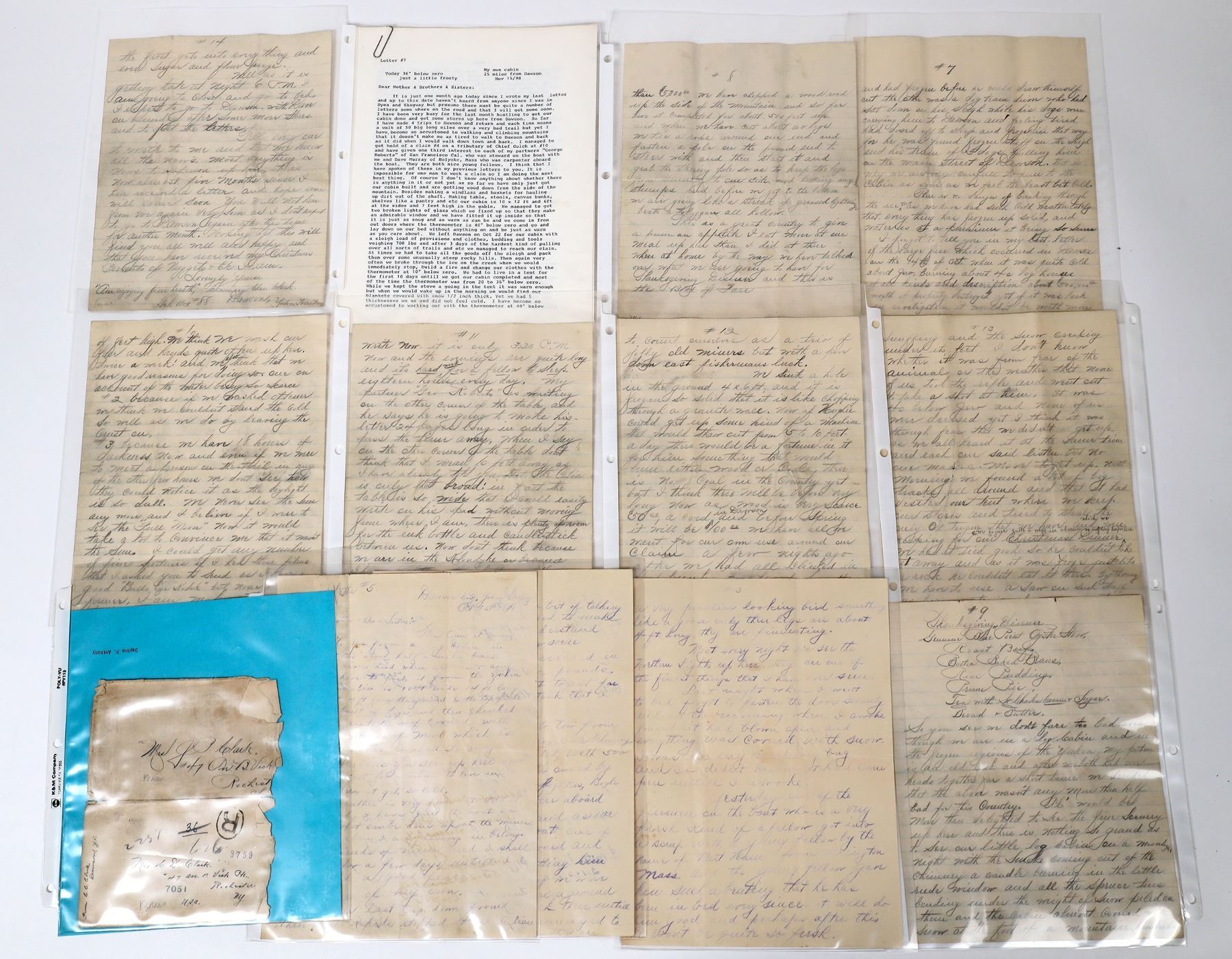 This is a collection of letters from Chauncey Clark looking for gold in the Yukon Territory to his mother, brother, and sister in Rochester, New York. One letter is dated October 1, 1898 and the other is dated November 15, 1898. "A little frosty at 35 below zero". He describes seeing the Northern Lights nearly every night. Both letters have been re-typed for your reading pleasure. Almost 19 pages hand written.