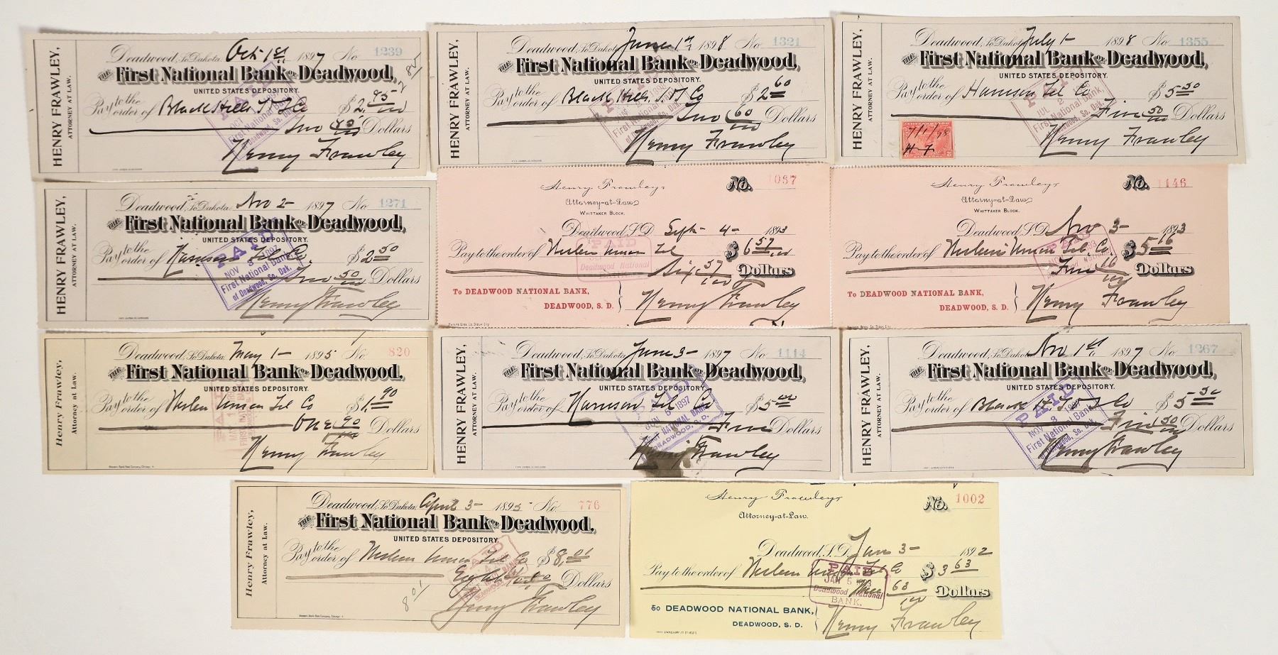 Lot of 11. All are from the archive of Deadwood lawyer Henry Frawley. Issued 1892-97. Companies include: Black Hills Telegraph & Telephone Co., Western Union, and Harrison Telegraph Co. Please inspect.