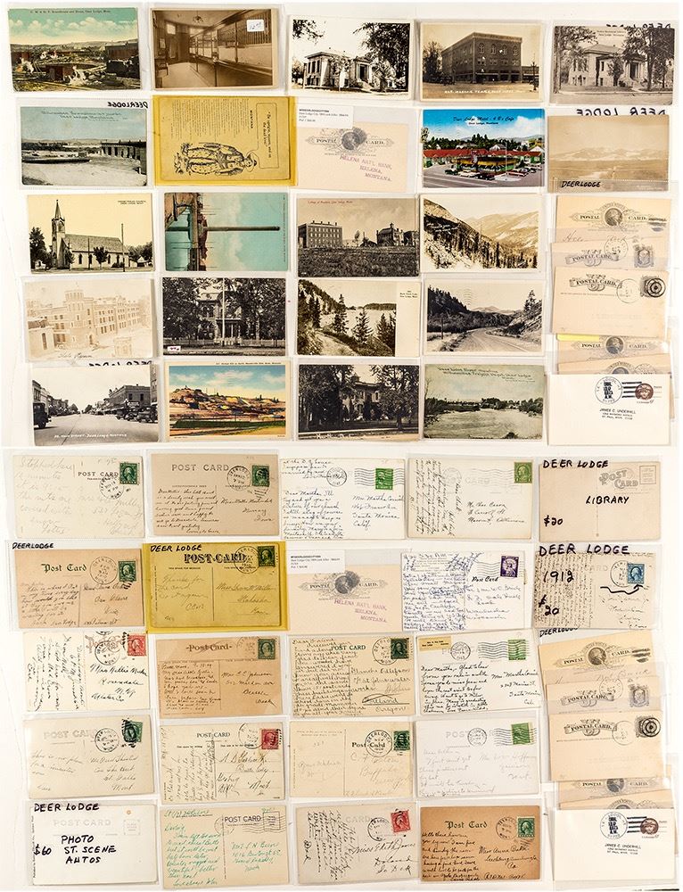 27 Postcards. Seven different postmarks, 9 RPC's; one very early of Mt. Powell, with note about favorite stamping grounds. Includes 7 postal cards. (Svoboda Collection) City: Deer Lodge State: Montana Date: c-1893-1971 HWAC# 35543