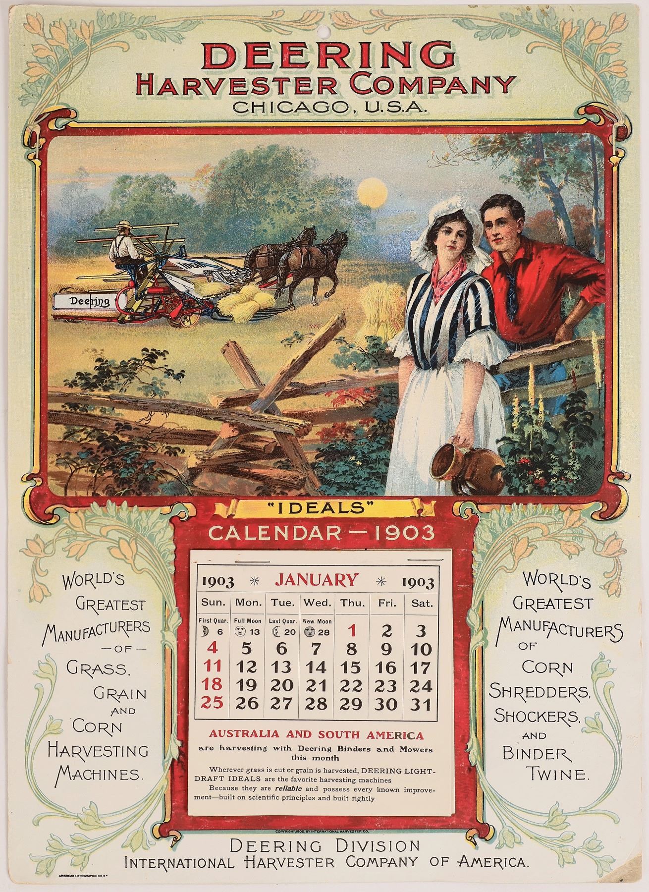 1903 full color litho calendar. John Deering was associated with American Harvester farm equipment. 13.5x9.75", lower right thin area, upper left crease.