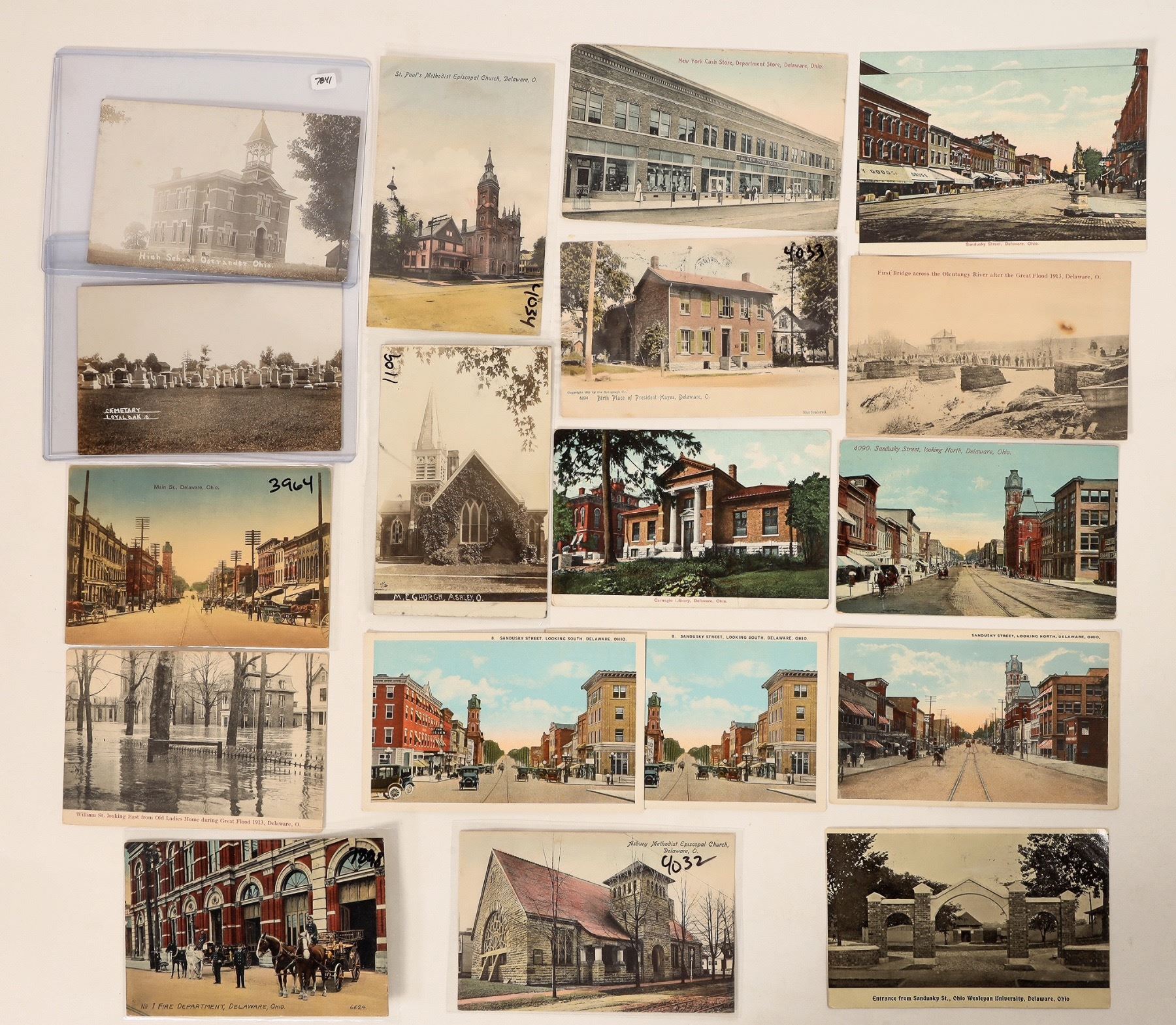 18 Delaware county OH postcards with 1 RPC of M E Church. Also, Ohio Wesleyan University, fire department, Carnegie library, President R B Hayes house, Sandusky St., NY Cash Store etc., Norton cemetery RPC, Ostrander HS.[ Delaware County Ohio