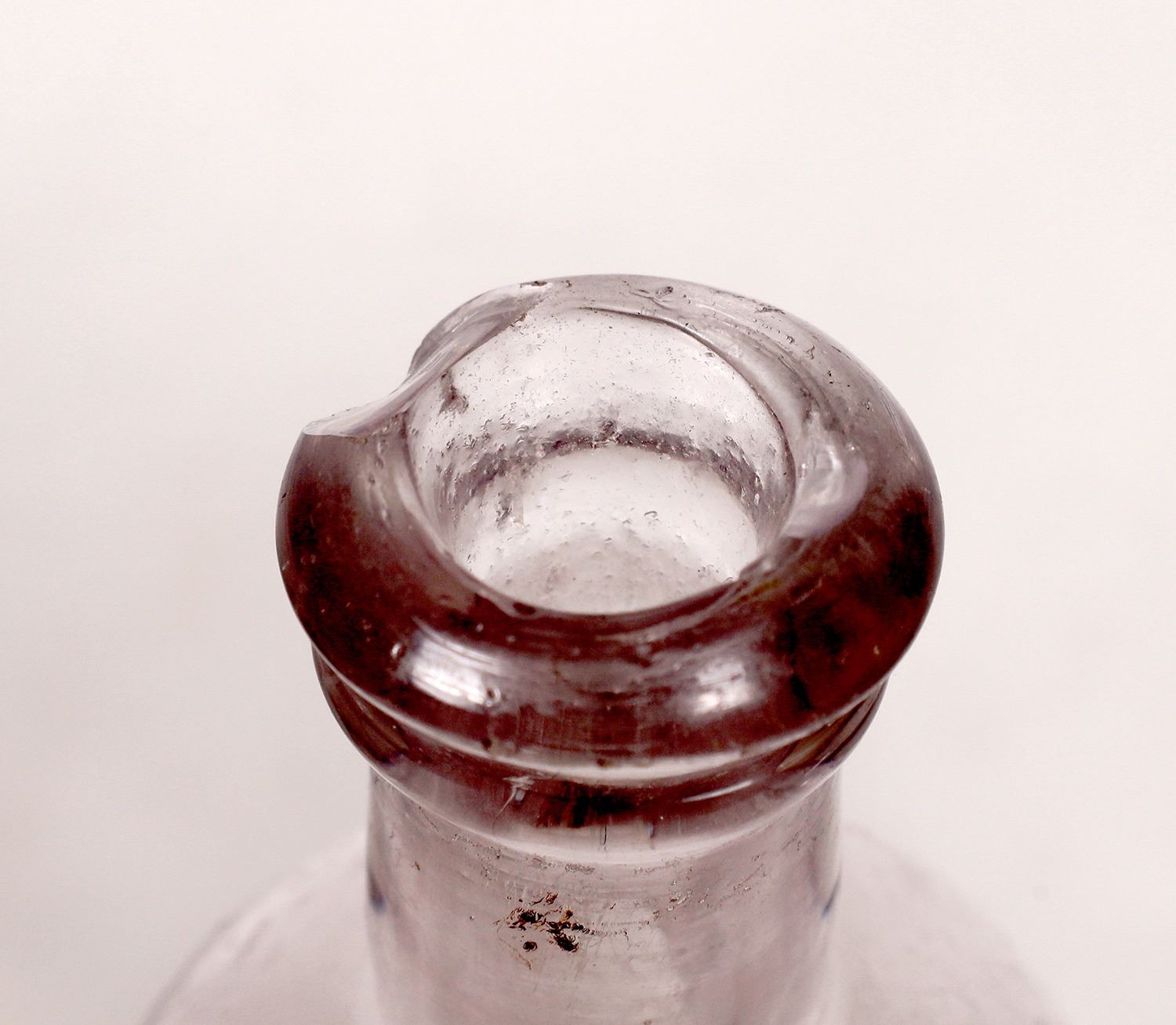 Group of eight from Colorado includes five different damaged drugstore bottles, an undamaged paper label drugstore bottle, plus two damaged dose cups: Cornelius Beukma/ Pharmacist/ Denver, light aqua, double roll top with large 1" chip on lip, 7"; Burt & Moritz PhG/ Druggist/ 2101 Larimer Street, Denver, clear, repair on neck, surface ding on side, 8"; Scholtz/ Denver, clear, .5x.5" chip on top, 8"; F. J. Lord/ Citrate/ of/ Magnesia/ Denver, Colo., clean, stain, .5" chip on lip, stain, 7.5"; L. D. Cunningham/ Silverton, Colo., light purple, double roll top, small flaw near base, 7.5"; Citrate/ of/ Magnesia, paper label "The Howe Drug Co." Pueblo, Colo., clear, glue on label, polished scratch near base, ceramic top attached, 8.5". Plus two different 2" dose glasses, clear, damaged: Compliments/ of/ Fred. Luedke, 1.5" crack near base; A.B. Phillips/ Druggist/ Denver, Colo., 1x1" piece broken from side, stain. Denver Colorado