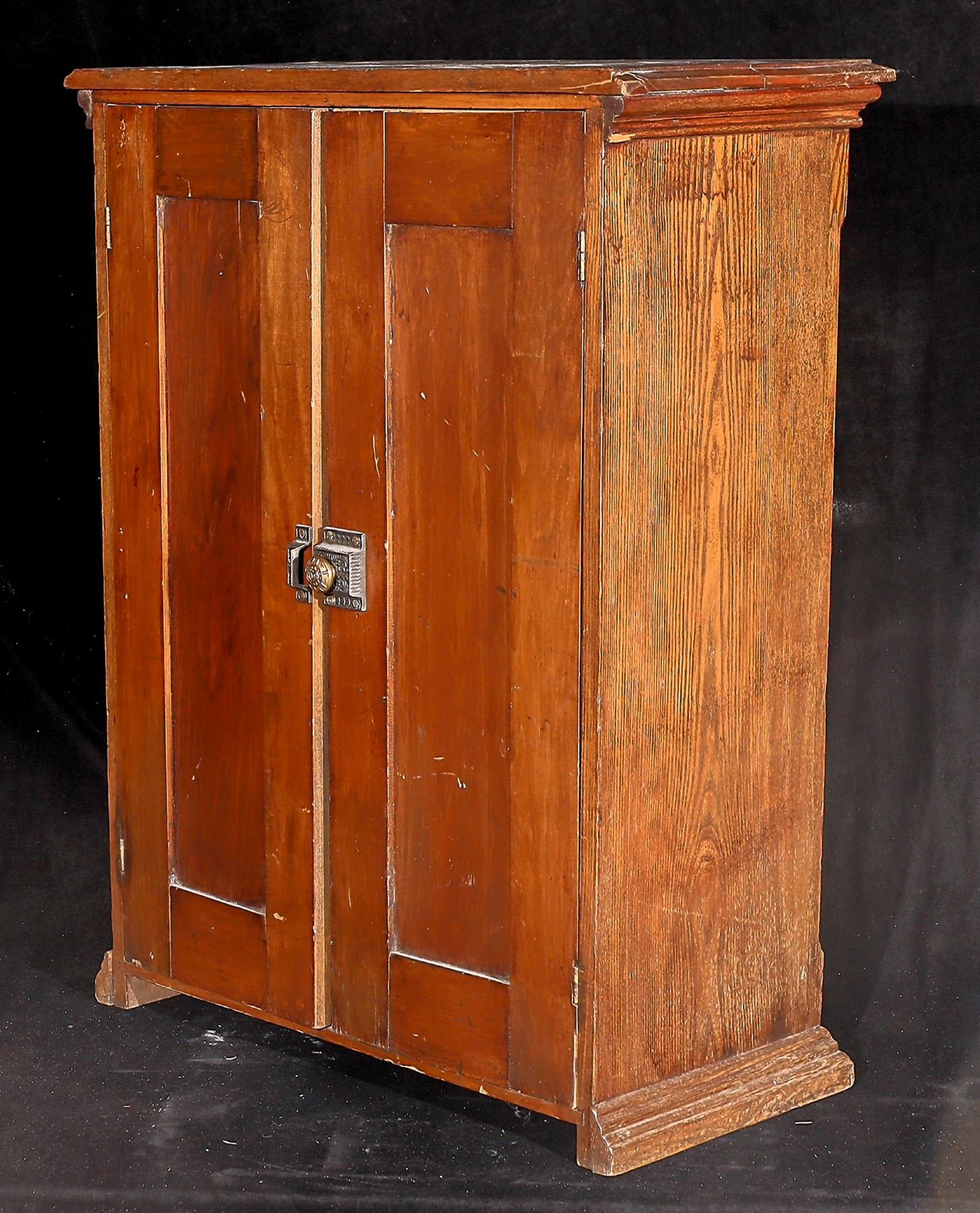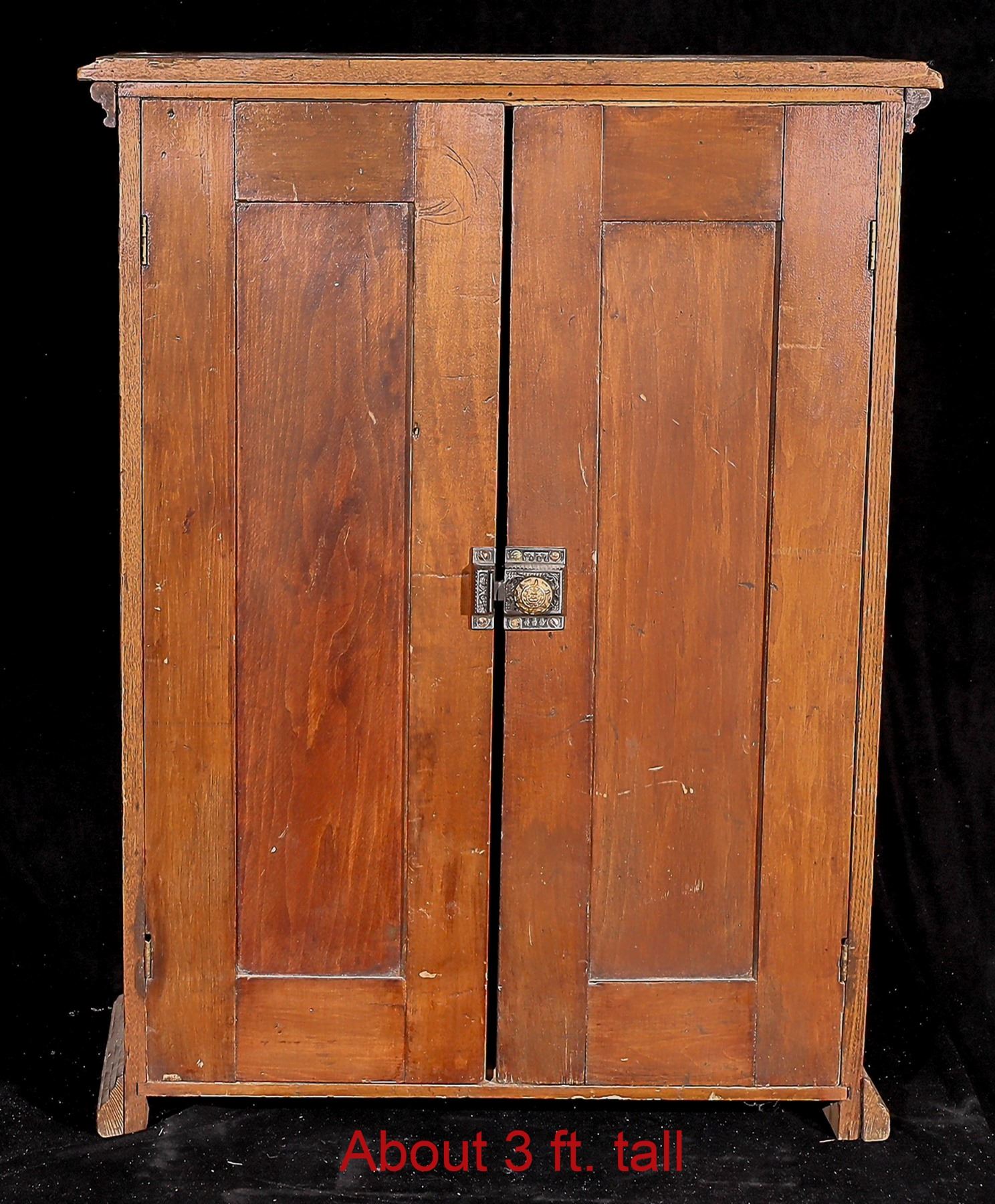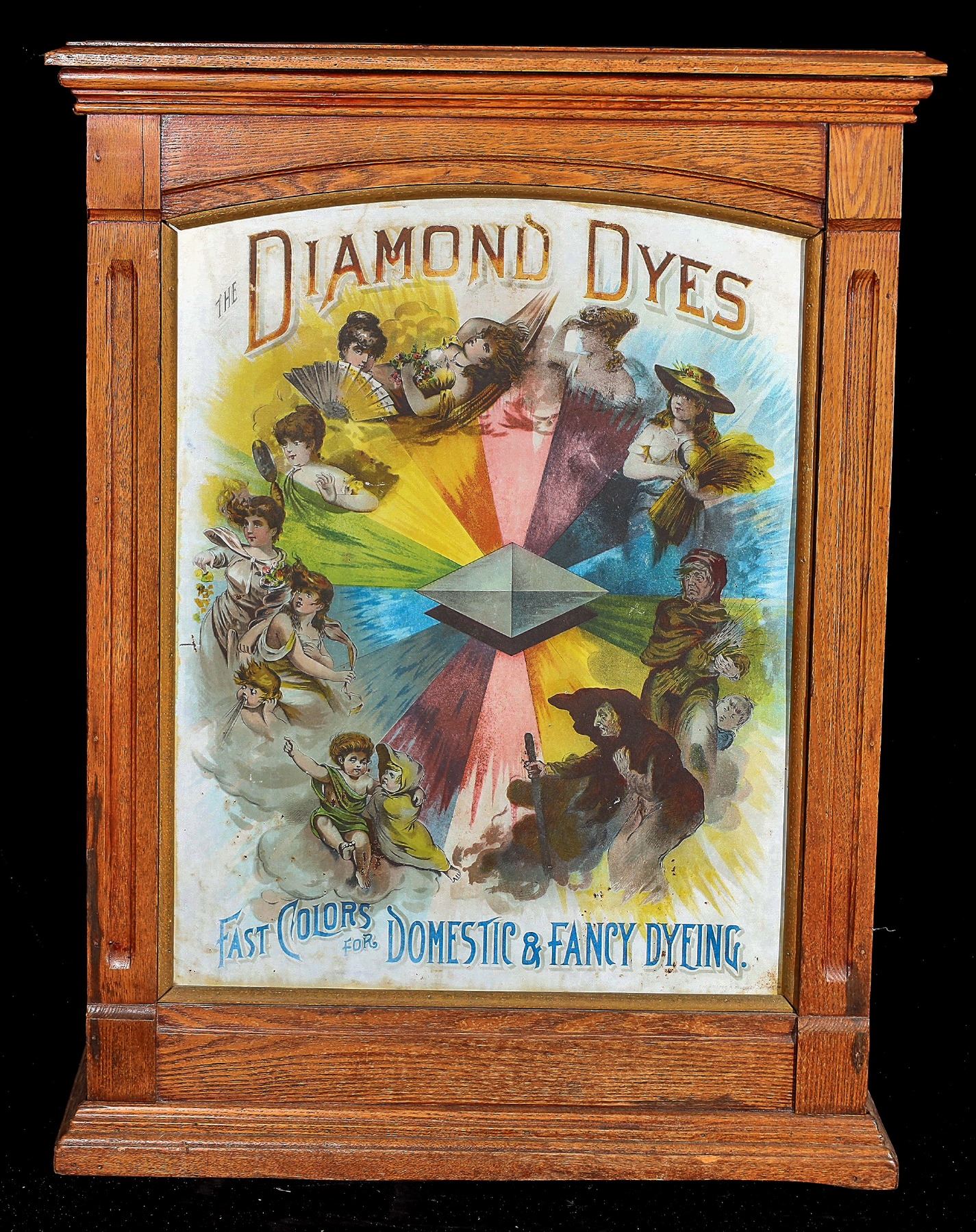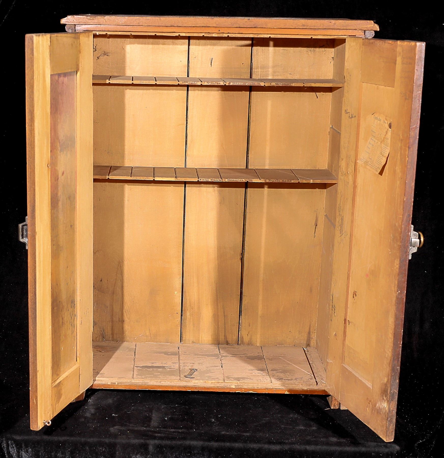 Diamond Dyes sales cabinet made of straight-grained, white oak. Opening back door pair, with two original shelves, four missing shelves, and missing dividers. Original 1922 label is still present. Old notes written in pencil on the inside of the doors. 11.5 x 23.5 x 30 inches, c1910s. LOCAL PICK-UP ONLY.
