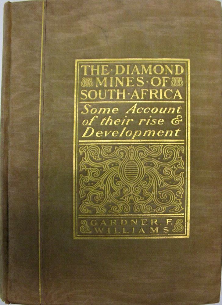 Beautiful Book of the Diamond Mines of South Africa / Some Account of their Rise & Development by Gardner F. Williams, 681 pp. many illustrations, maps, ships, color stones, picture of Zulu in War Attire, Native Drilling De Beers Mine, & so much more. This book has deckle edges, gold color embossed hard cover. Very interesting for anyone interested in diamond mines of South Africa & its beginnings. 7.25" x 10.25". HWAC# 62012 Date: c. 1902 Location: zSouth Africa