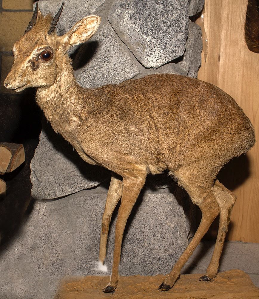 A full body mount of a Dik-Dik from Kenya with base. Standing on four legs. Killed prior to 1988, on display in a western museum since that time. Date: Location: HWAC # 43725