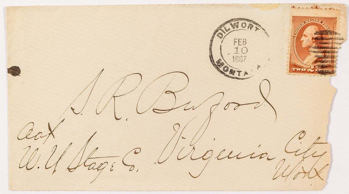 No Dilworth cancels are reported in Shellen & Dunn. Post office open from 1884-1891. This is an 1887 double ring oval grid killer with a strong strike (right hand side is weak). Sent to Virginia City via W. U. Stage Company. (Svoboda Collection) City: Dilworth State: Montana Date: 1887 HWAC# 35266