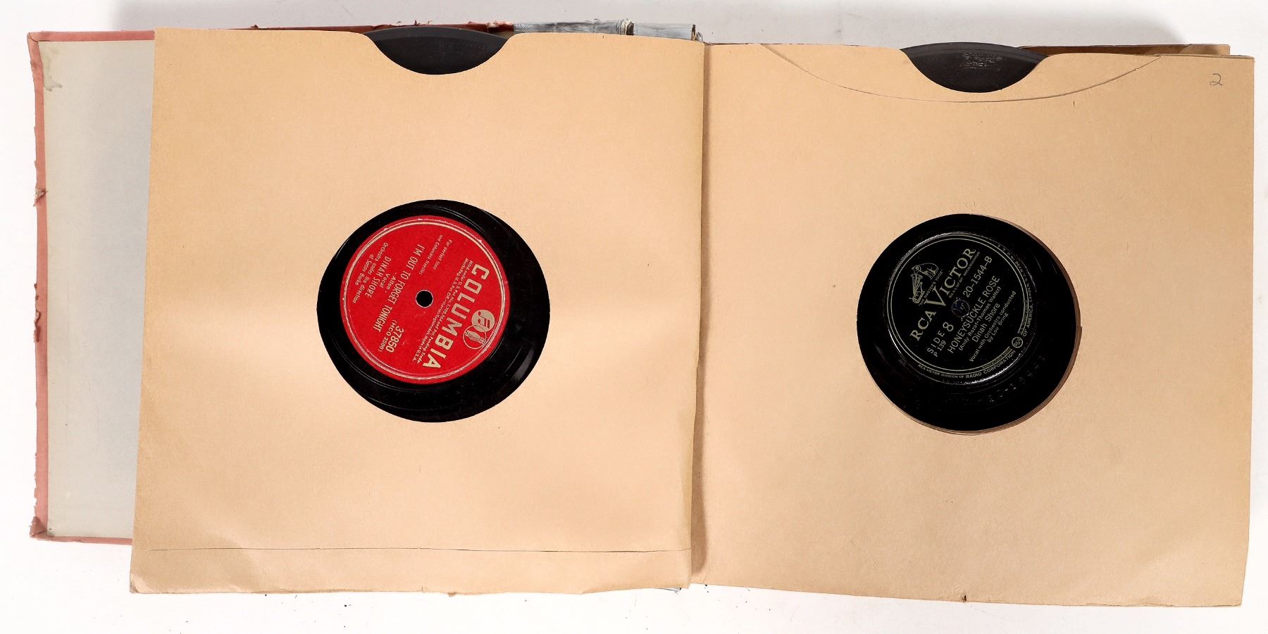 Collection of 20 records of the music of American singer, actress, and talk show host Dinah Shore, dating c. 1940s-1950s. Shore had an impressive career in music and entertainment that spanned decades, producing numerous songs throughout the 40s, 50s, and 60s. Lot includes records produced by Columbia, Victor, and Tempo.